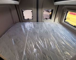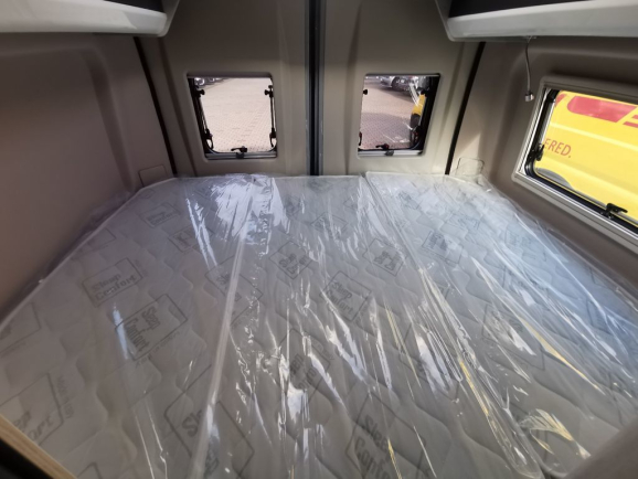 Opcjonalny rozsuwany dach podnoszony ze zintegrowanym łóżkiem daje dwa dodatkowe łóżka i idealnie nadaje się do wykorzystania tyłu furgonetki wyłącznie do przechowywania i zwiększenia miejsca dostępnego w części mieszkalnej.