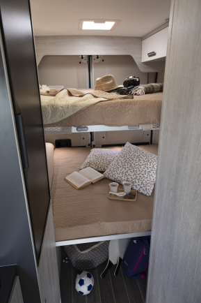 Garaż wyposażony w maksymalną modułowość do transportu nawet większych przedmiotów (na przykład rowerów) dzięki wyjmowanym lub podnoszonym łóżkom. Schowki i przedziały pod łóżkami zapewniają elastyczność załadunku. Miejsce na dwie butle gazowe.