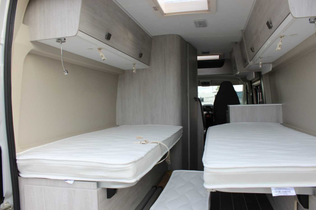 Garaż wyposażony w maksymalną modułowość do transportu nawet większych przedmiotów (na przykład rowerów) dzięki wyjmowanym lub podnoszonym łóżkom. Schowki i przedziały pod łóżkami zapewniają elastyczność załadunku. Miejsce na dwie butle gazowe.
