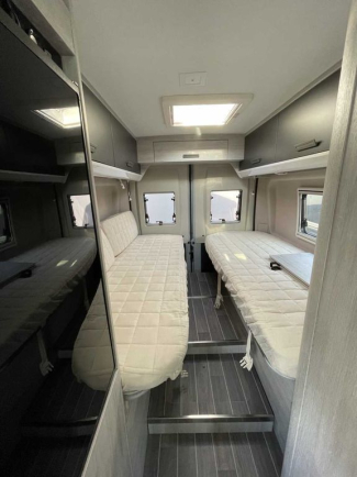 Garaż wyposażony w maksymalną modułowość do transportu nawet większych przedmiotów (na przykład rowerów) dzięki wyjmowanym lub podnoszonym łóżkom. Schowki i przedziały pod łóżkami zapewniają elastyczność załadunku. Miejsce na dwie butle gazowe.
