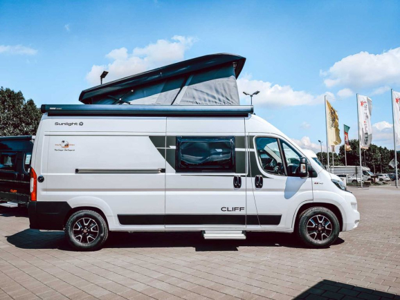 Sunlight CLIFF 600 RT Adventure Edition to nowoczesny kamper typu van, zaprojektowany z myślą o entuzjastach podróży poszukujących funkcjonalności i komfortu w kompaktowej formie. Dzięki podnoszonemu dachowi sypialnemu i przemyślanemu układowi wnętrza, pojazd ten oferuje przestrzeń i wygodę podczas każdej wyprawy.