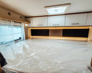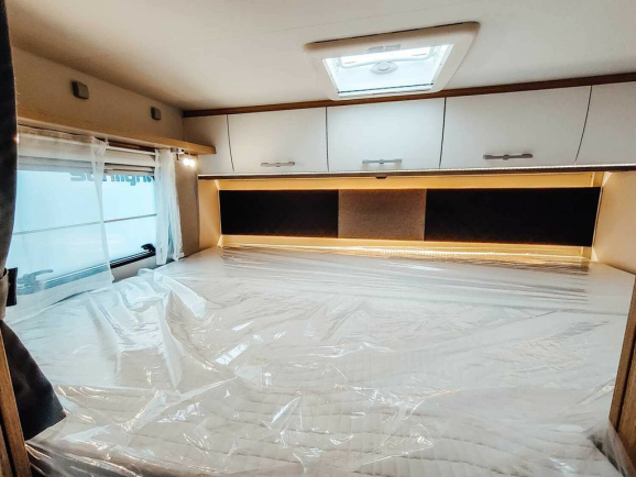 - Wysuwane łóżko w alkowie dla lepszego dostępu do kabiny (w przypadku zamówienia opcjonalnej przebudowy części wypoczynkowej w zintegrowanej jednostce wejście do łóżka jest przez boczną kanapę)