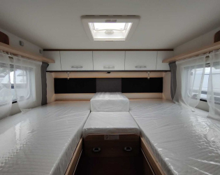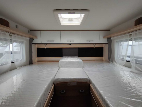 - Wysuwane łóżko w alkowie dla lepszego dostępu do kabiny (w przypadku zamówienia opcjonalnej przebudowy części wypoczynkowej w zintegrowanej jednostce wejście do łóżka jest przez boczną kanapę)