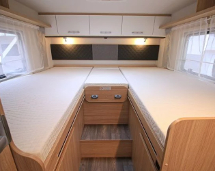 - Wysuwane łóżko w alkowie dla lepszego dostępu do kabiny (w przypadku zamówienia opcjonalnej przebudowy części wypoczynkowej w zintegrowanej jednostce wejście do łóżka jest przez boczną kanapę)