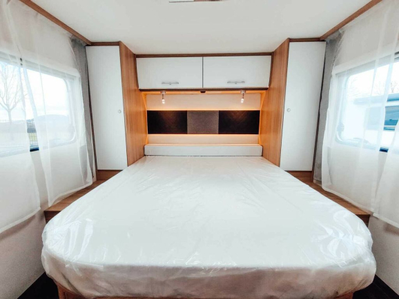 - Wysuwane łóżko w alkowie dla lepszego dostępu do kabiny (w przypadku zamówienia opcjonalnej przebudowy części wypoczynkowej w zintegrowanej jednostce wejście do łóżka jest przez boczną kanapę)