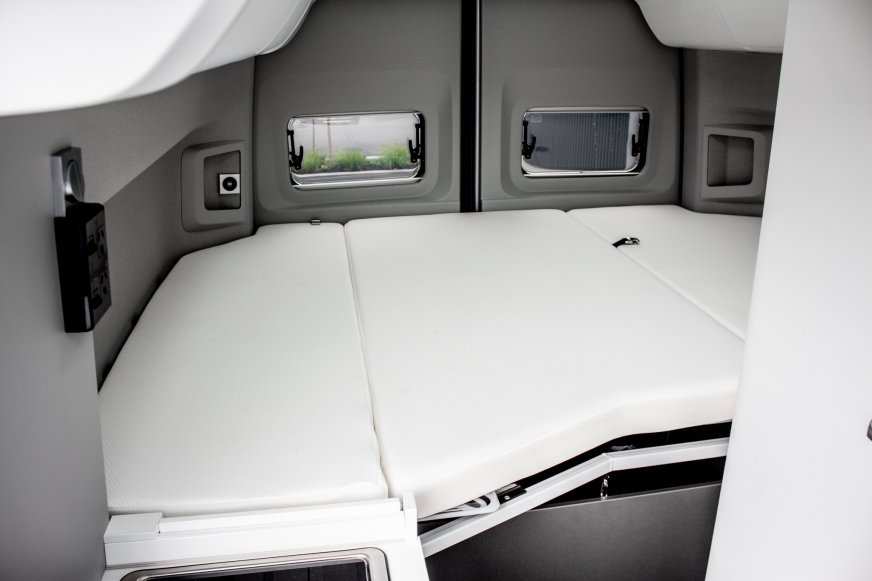- Wysuwane łóżko nad jadalnią, drabinka, oświetlenie, okno dachowe - tylko dla Grand Californi 600