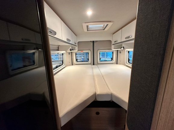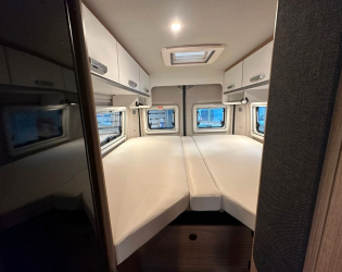 * Dostępne tylko w kolorze dachu: White lub Lava Grey. Wybranie tej opcji powoduje zwiększenie wysokości pojazdu o ok. 20 cm. Pamiętaj, że jeśli wybierzesz podnoszony dach i opcję „poprzecznego łóżka gościnnego z dodatkową poduszką”, nie można ich używać jednocześnie na co dzień.