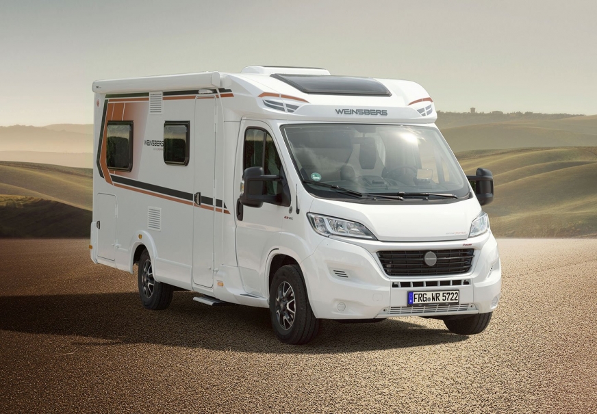 - Drzwi nadwozia: WEINSBERG PREMIUM: samochodowy system zamykania, konstrukcja jednoczęściowa, z podwójną uszczelką, wielokrotne ryglowanie, ukryty system zawiasów, ograniczenie otwarcia / blokowanie położenia drzwi sprężyną gazową, w tym okno z plisowanym zaciemnieniem, zintegrowana przegroda na parasol, wysokiej jakości aplikacje, wielofunkcyjna torba w WEINSBERG Design