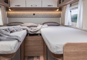 Dzięki pomysłowej przestrzeni nad głową i praktycznemu podnoszonemu łóżku, CaraSuite oferuje mnóstwo miejsca na wspaniałe wakacje. Wiele możliwości spania i przytulna atmosfera sprawiają, że jest to idealny pojazd rodzinny lub wielopokoleniowy.