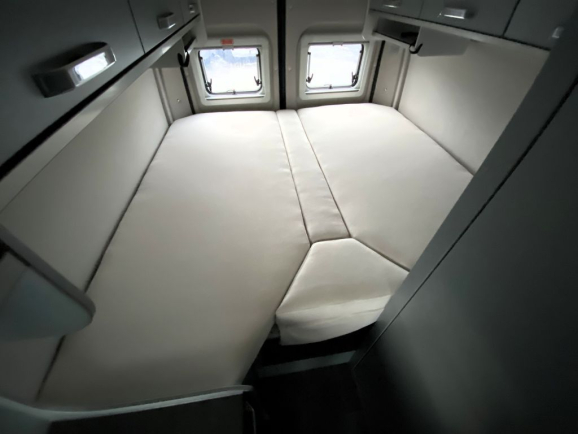 *Dostępne tylko w kolorze dachu: White lub Lava Grey. Wybranie tej opcji powoduje zwiększenie wysokości pojazdu o ok. 20 cm. Pamiętaj, że jeśli wybierzesz podnoszony dach i opcję „poprzecznego łóżka gościnnego z dodatkową poduszką”, nie można ich używać jednocześnie na co dzień.