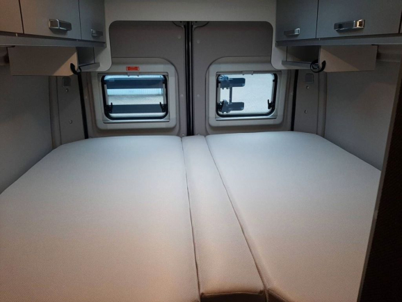 *Dostępne tylko w kolorze dachu: White lub Lava Grey. Wybranie tej opcji powoduje zwiększenie wysokości pojazdu o ok. 20 cm. Pamiętaj, że jeśli wybierzesz podnoszony dach i opcję „poprzecznego łóżka gościnnego z dodatkową poduszką”, nie można ich używać jednocześnie na co dzień.
