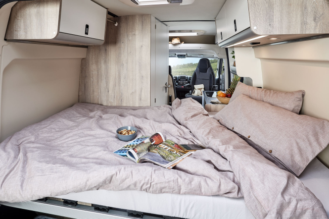 - Łatwy dostęp i wyjście przez tylne drzwi ze zoptymalizowaną pozycją uchwytu, nawet gdy łóżko jest w pozycji do spania