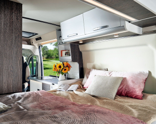 - Schowki dachowe po prawej i lewej stronie nad łóżkiem wraz z indywidualnie sterowanymi punktami LED (nie w Columbus 540 D, tylko po prawej stronie)