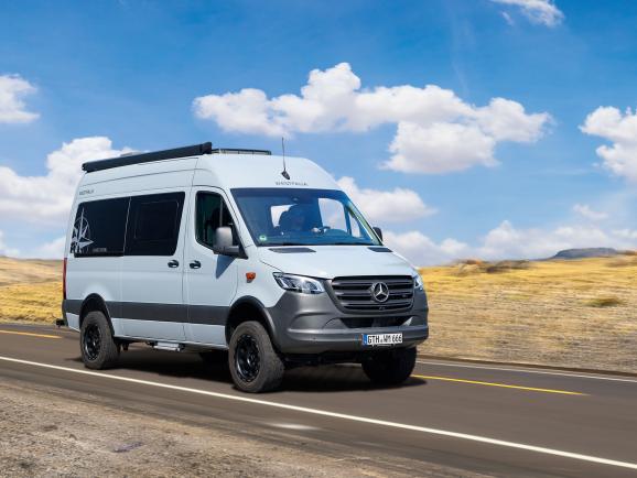 - Aktywny asystent odległości DISTRONIC, tylko z automatyczną skrzynią biegów, skórzaną kierownicą i Pakietem Westfalia Plus