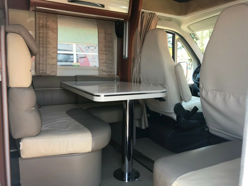ABS, ASR, immobilizer, radio fabryczne, klimatyzacja DOMETIK z pilotem, webasto, tempomat, elektryczne szyby i lusterka, wspomaganie kierownicy, nawigacja, DVD, kamera cofania, instalacja gazowa, elektryczna zewnetrzna, akumulator, TV z Giocamperem automatyczna antena, lodówka z zamrazarka, piekarnik z funkcja grilla, kuchenka gazowa, zlewozmywak, prysznic, toaleta, dwa lózka regulowane elektrycznie, instalacja oswietlenia LED, obrotowe fotele przednie, regulowany stolik, roleta, duzy bagaznik, szyberdach z