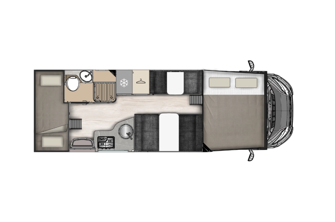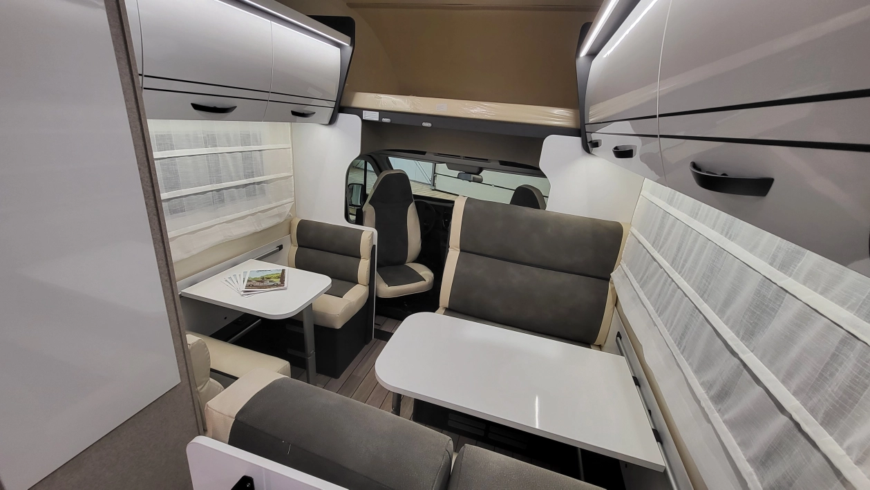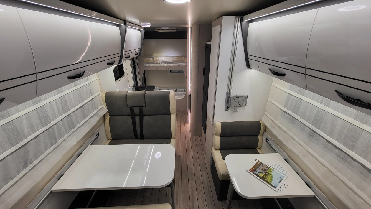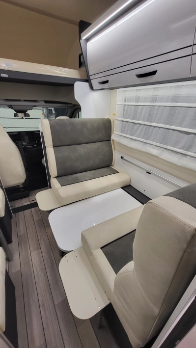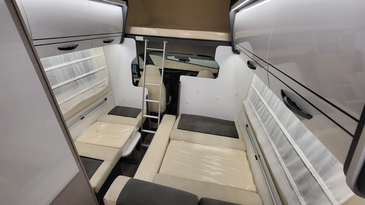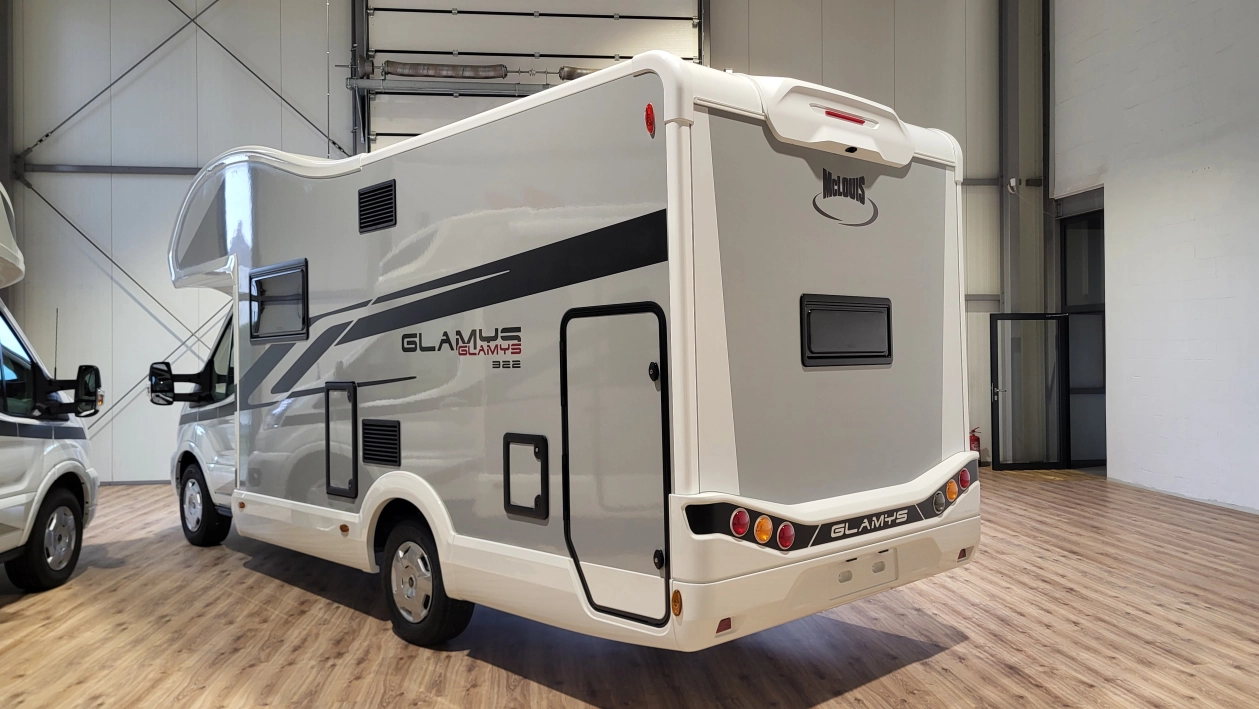 McLouis Glamys 322Siedmioosobowa alkowa, która pomieści całą rodzinę. Kamper o długości całkowitej do 7 metrów, z DMC do 3,5 t., i homologowanymi siedmioma miejscami do jazdy, spania i jedzenia.