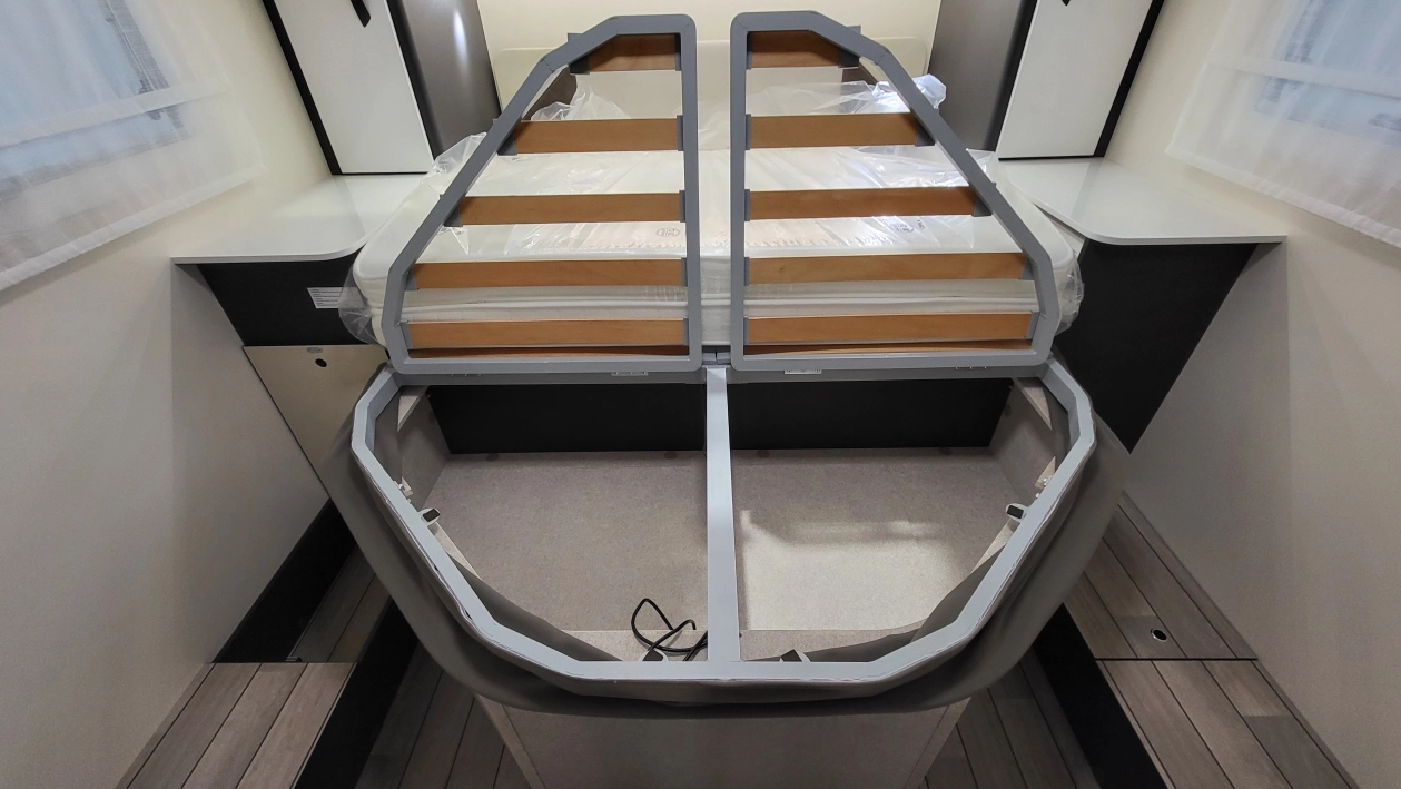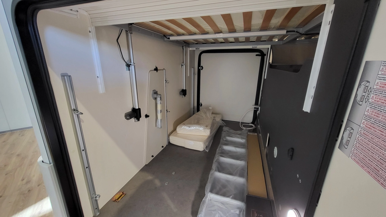 - Elektrycznie regulowana wysokość łóżka centralnego góra-dół w garażu