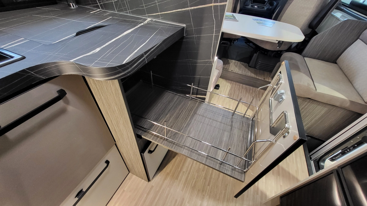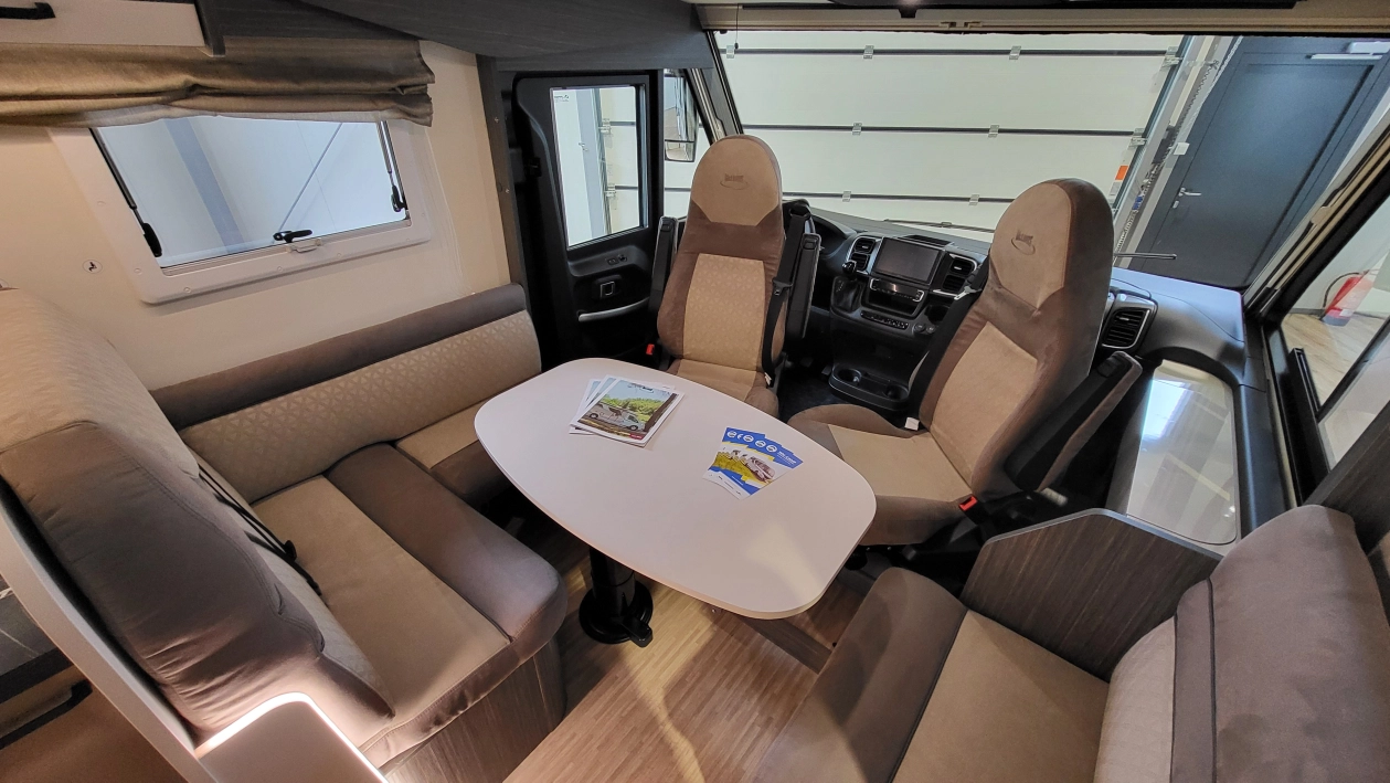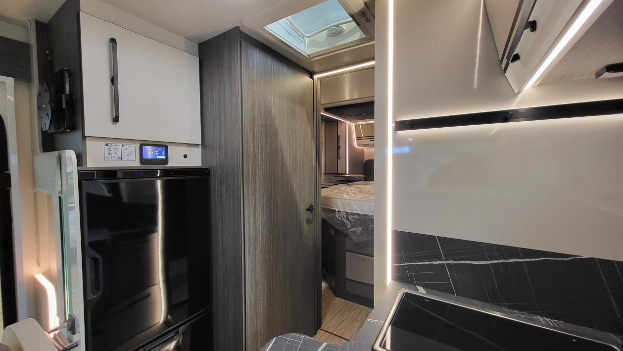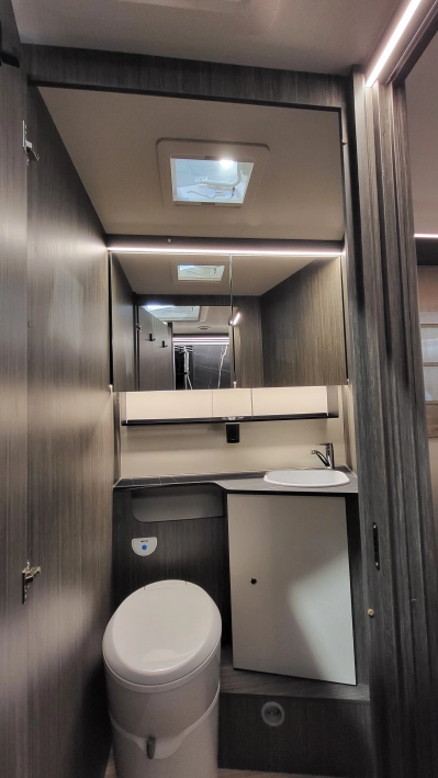 Pięcioosobowy kamper w pełni zintegrowany na podwoziu nowego Fiata Ducato w układzie salonu klasycznej „L”, opuszczanego manualnie łóżka nad szoferką dla 2 osób, przestronną kuchnią z licznymi schowkami i dużą łazienką z pełnowymiarową kabiną prysznicową. Łazienka zamykana jest z obu stron. Z tyłu pojazdu znajduje się układ łóżka centralnego/królewskiego. Wszystko to otrzymujemy w kamperze o długości 7,45 metra. Ten egzemplarz wyróżnia się także bogatym wyposażeniem fabrycznym.