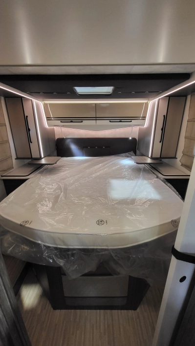 - Elektrycznie regulowana wysokość łóżka królewskiego/centralnego w tylnej części pojazdu
