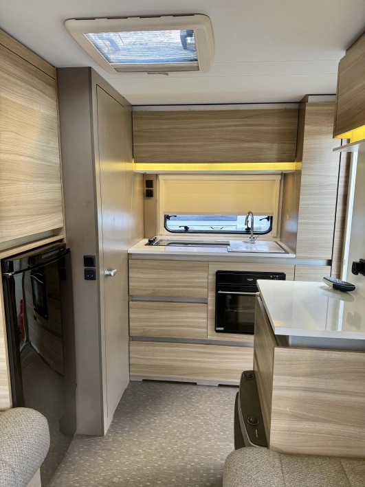 Dzięki przemyślanemu układu wnętrza przyczepa zapewnia cztery miejsca do spania zachowując niewielkie rozmiary.