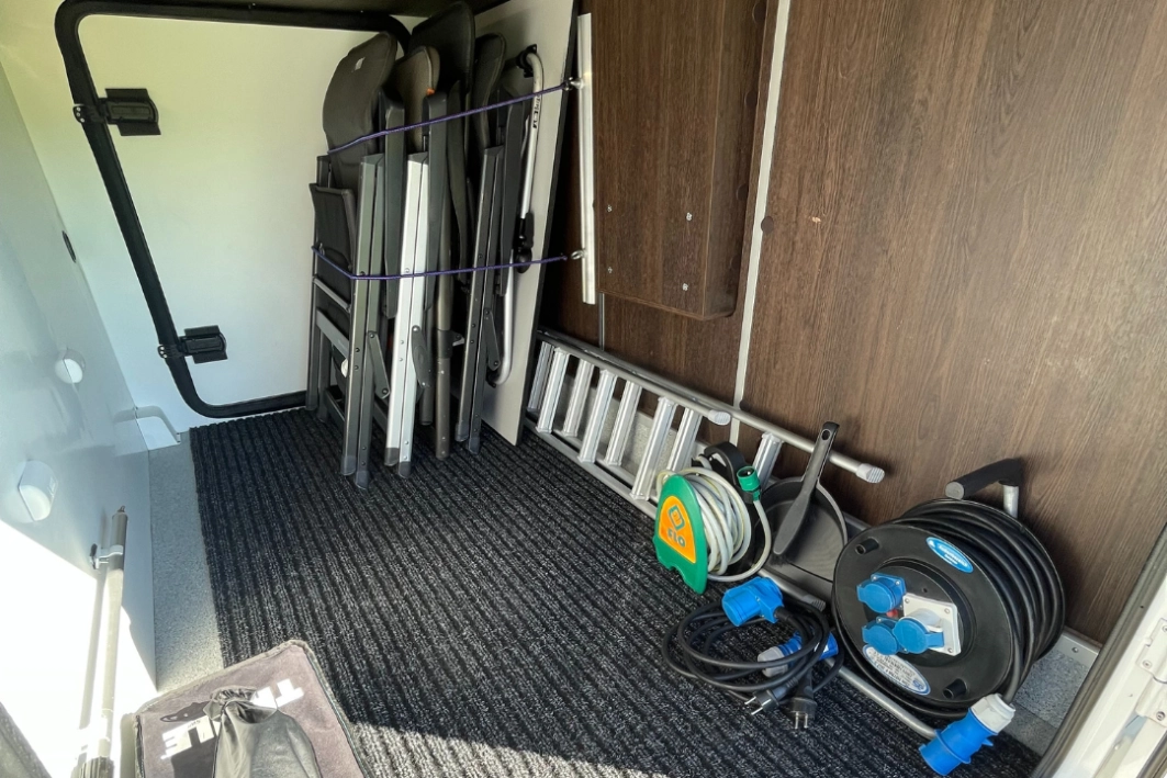 Ten egzemplarz wyróżnia się zabudową bez elementów drewnianych, klimatyzacją postojową z funkcją grzania, panelem solarnym 150 W i pełnym pakietem komfortu (markiza Thule, TV, bagażnik 4 × rower, kamera cofania).