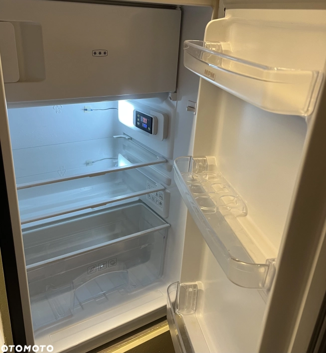 Duża lodówka MPM (przerobiona na 12V), kuchenka dwupalnikowa Dometic ze zlewem i szklanymi blatami.