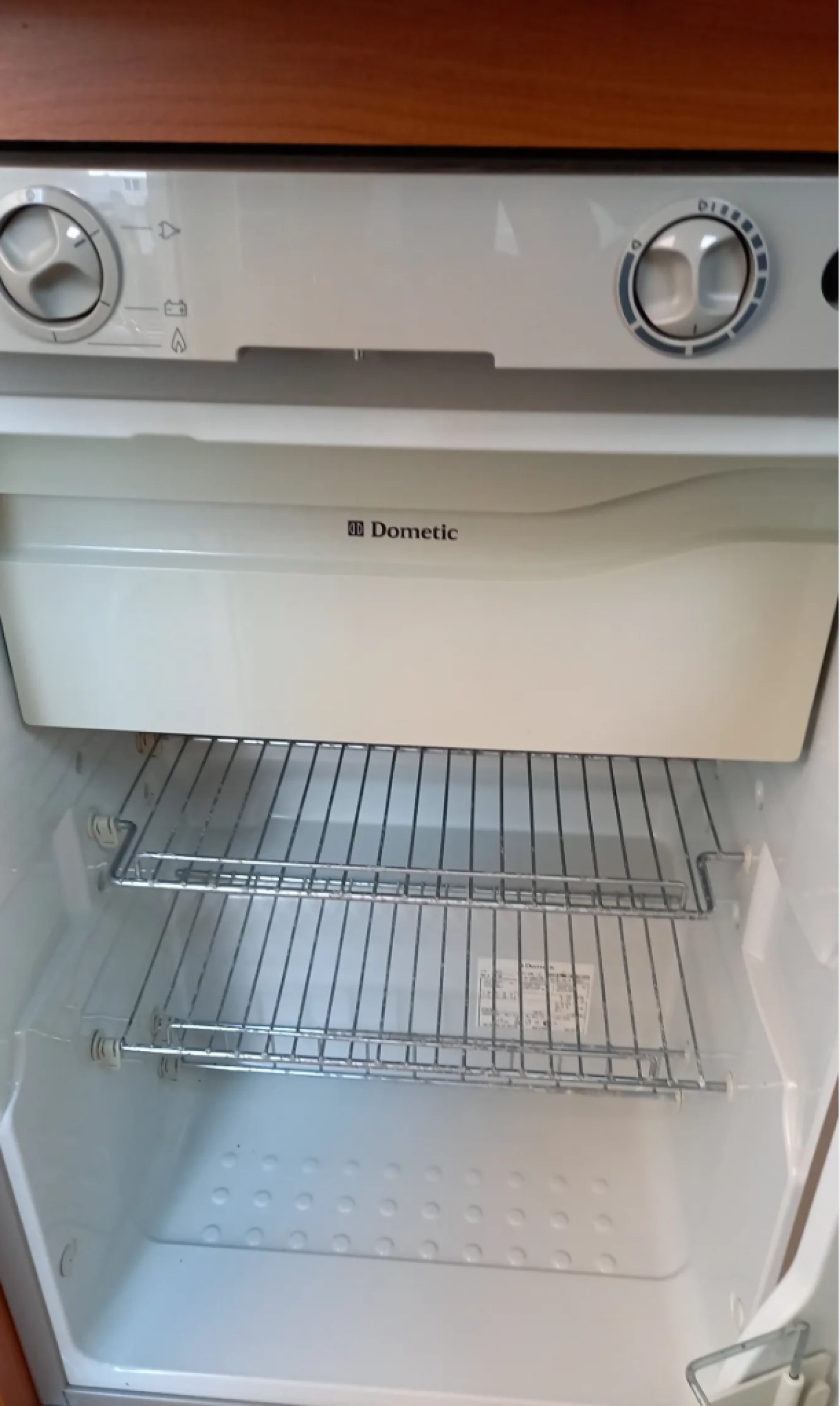 Toaleta chemiczna Thetford (duży zasobnik), prysznic, umywalka + szafki łazienkowe. Z prysznica nie korzystałem w przyczepie ani razu – szkoda zachodu żeby później wycierać całą łazienkę, skoro na kempingach są dzisiaj dostępne ekstra wygodne sanitariaty.