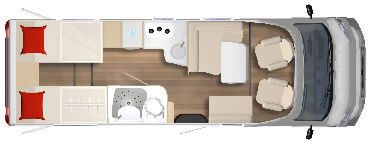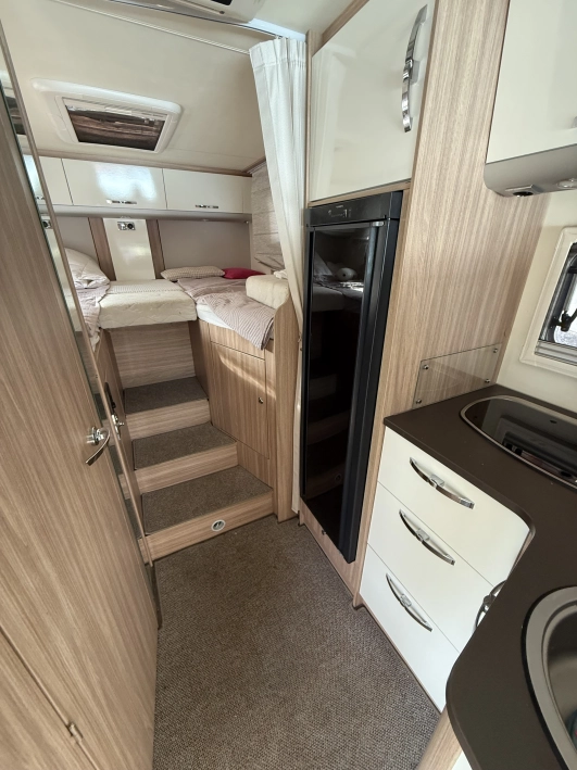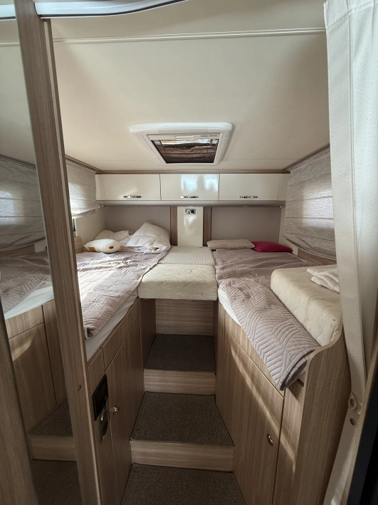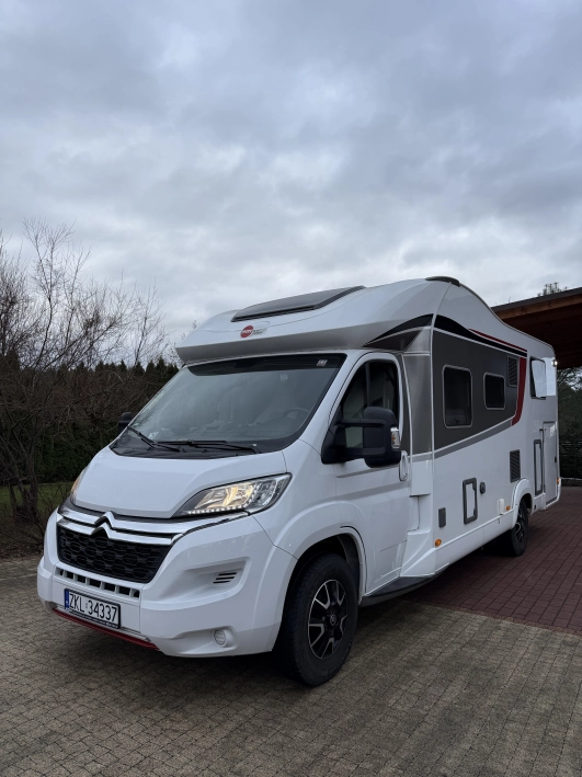 Długość (cm) - 714, Ogrzewanie - Ogrzewanie gazowe Truma Combi 6, Klimatyzacja , Szerokość (cm) - 230, Lodówka - Dometic (3 funkcyjna – automatyczna) 145 l z zamrażalnikiem 15 l, Antena satelitarna , Wysokość (cm) - 280, Zbiornik szarej wody (l) - 90, TV , Zbiornik czystej wody (l) - 120, Zestaw głośnomówiący , Markiza , Kamera cofania , Obrotowe fotele , Bagażnik rowerowy , Roleta okien przednich , Alufelgi , Zlewozmywak , Lodówka , Ogrzewanie , Kuchenka gazowa , ABS , ASR - kontrola trakcji , ESP - stabilizacja toru jazdy , Komputer pokładowy , Tempomat , Wspomaganie kierownicy , Immobilizer , Elektryczne szyby , Elektrycznie ustawiane lusterka , CD , Bluetooth , Nawigacja GPS , Poduszka powietrzna kierowcy , Poduszka powietrzna pasażera , Światła do jazdy dziennej , Światła LED , Umywalka , Prysznic , Toaleta kasetowa , Antena DVBT , Przystosowanie do zimy , Moskitiery , Oświetlenie wewnętrzne LED , Bateria żelowa