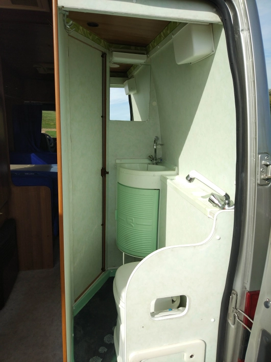 Wyjątkowym czyni ten campervan duża łazienka i kuchnia (lodówka). Zbiornik na wodę czystą ok 100l, na szarą 80l. Wyposażony w hak i bagażnik rowerowy.