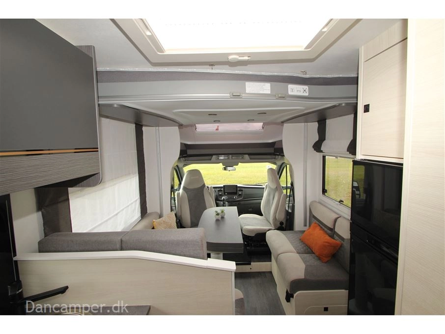 Unikalny na rynku model 716 to pierwszy rodzinny, niskoprofilowy kamper z chowanymi łóżkami piętrowymi, rodzinne, 2 pietrowe, 2 multifunkcyjne. W ciągu dnia prycze wsuwają się elektrycznie na dach, aby pozostawić miejsce do zabawy dla dzieci. Idealny dla rodziny z dwójką dzieci, 716 posiada również atrakcyjną garderobę, oddzielny prysznic. Duży bagaznik.