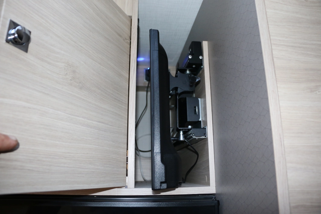 • Podwieszane, elektrycznie opuszczane łóżko 2-osobowe (w przedniej części zabudowy)