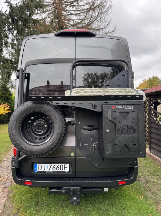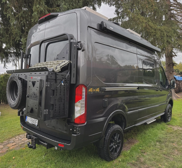 - dodatkowy cargo box z bagażnikiem rowerowym na górze (Overland) i najazdami