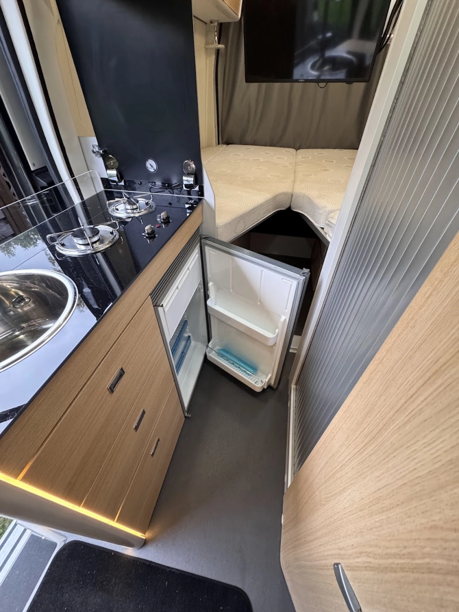 Wersja zimowa z podwójną podłogą oraz wydajnym ogrzewaniem wnętrza i bojlerem 10l Truma Combi D 6 E. Ogrzewanie postojowe 12V na paliwo diesel lub dwa tryby elektryczne 900 i 1800W po podpięciu pod zewnętrzne zasilanie 230V.