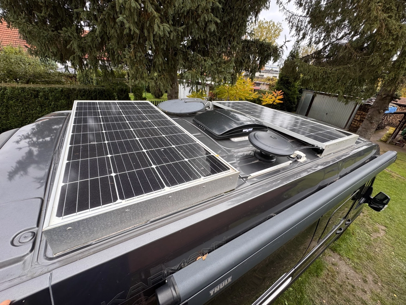 - fotowoltaika 2x panel 1500x680 170W na dachu plus regulator napięcia MPPT Western WRM20+