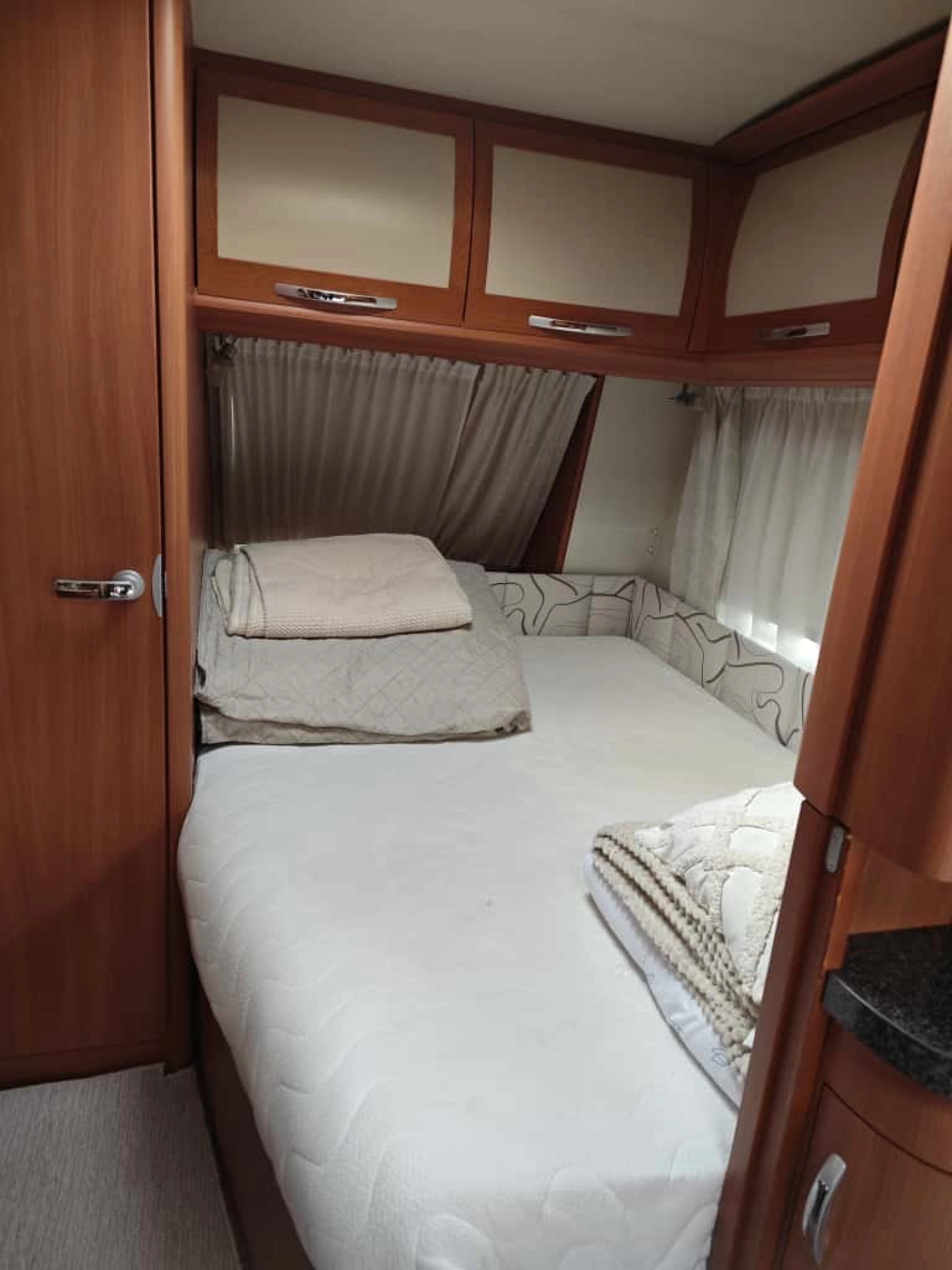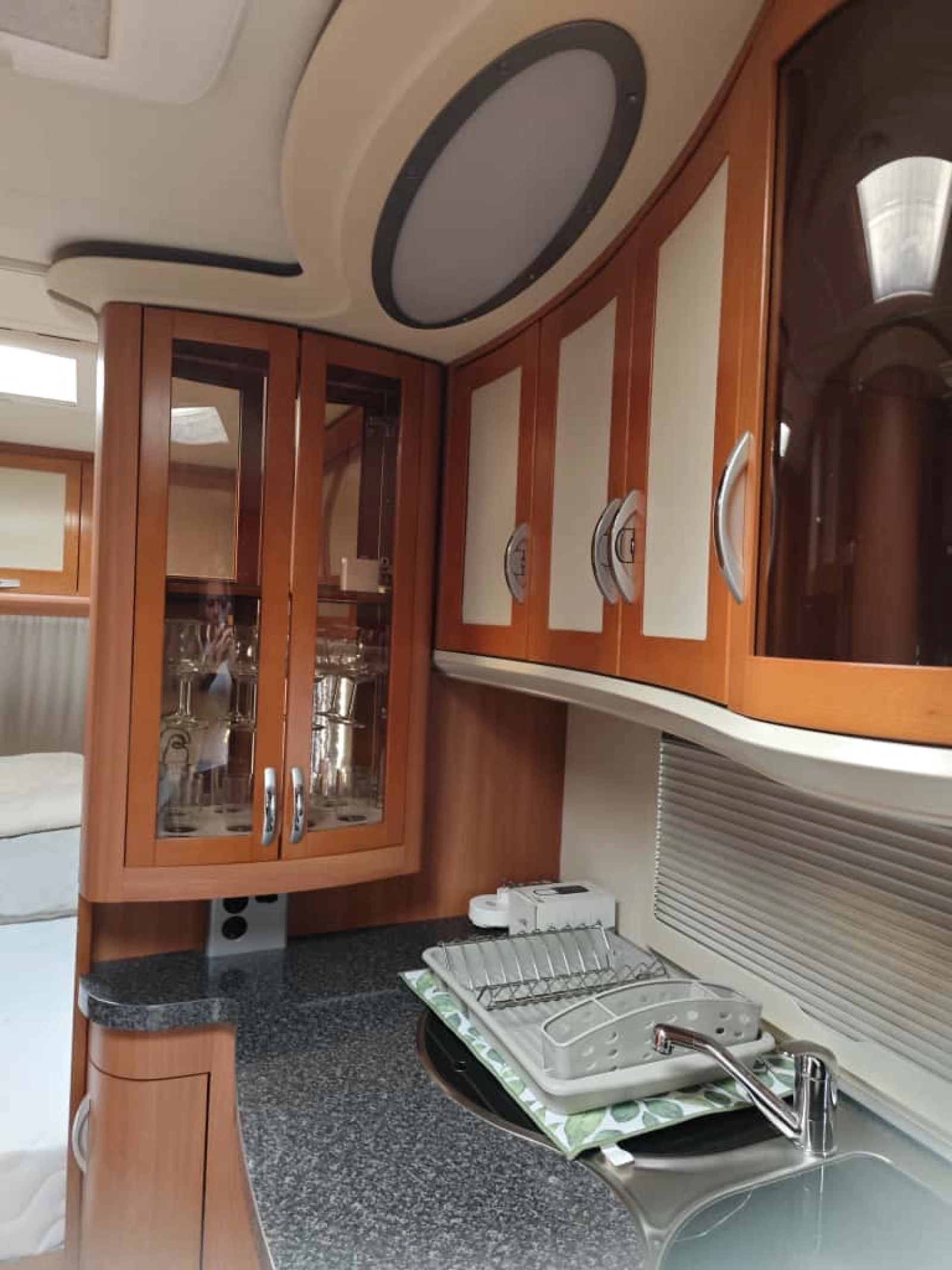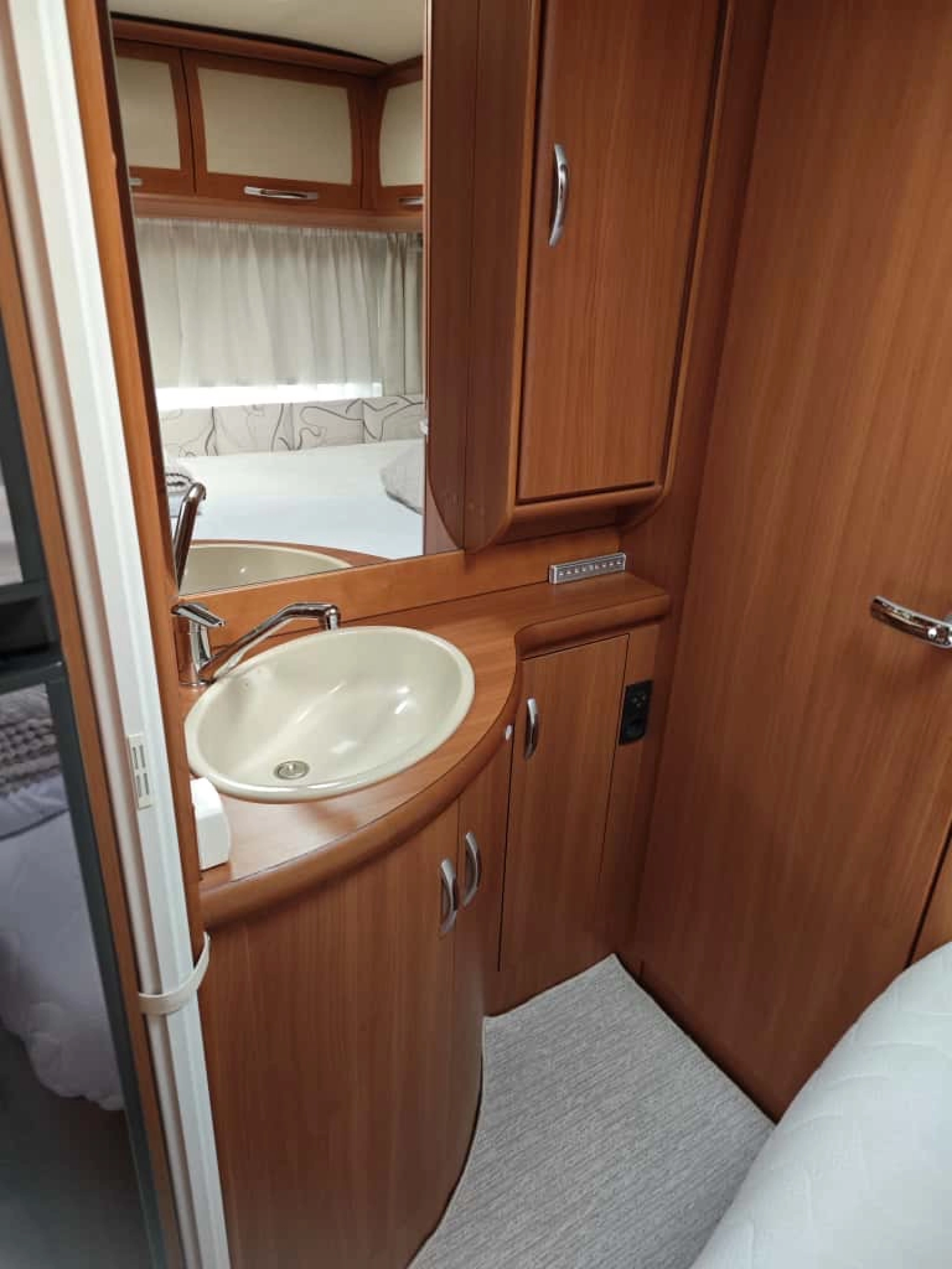 W środku znajduje się przestronna część wypoczynkowa w kształcie podkowy, którą można rozłożyć na dodatkowe spanie, a także osobna sypialnia z wygodnym łóżkiem francuskim. Kuchnia została wyposażona w kuchenkę gazową, duży blat roboczy, lodówkę działającą na 12V/230V/gaz oraz zlewozmywak. Do dyspozycji jest również łazienka z WC kasetowym i prysznicem. Komfort zapewnia ogrzewanie Truma z nadmuchem oraz bojler do ciepłej wody. Całość dopełniają liczne szafki i schowki, rolety i moskitiery w oknach oraz nastrojowe oświetlenie LED.
