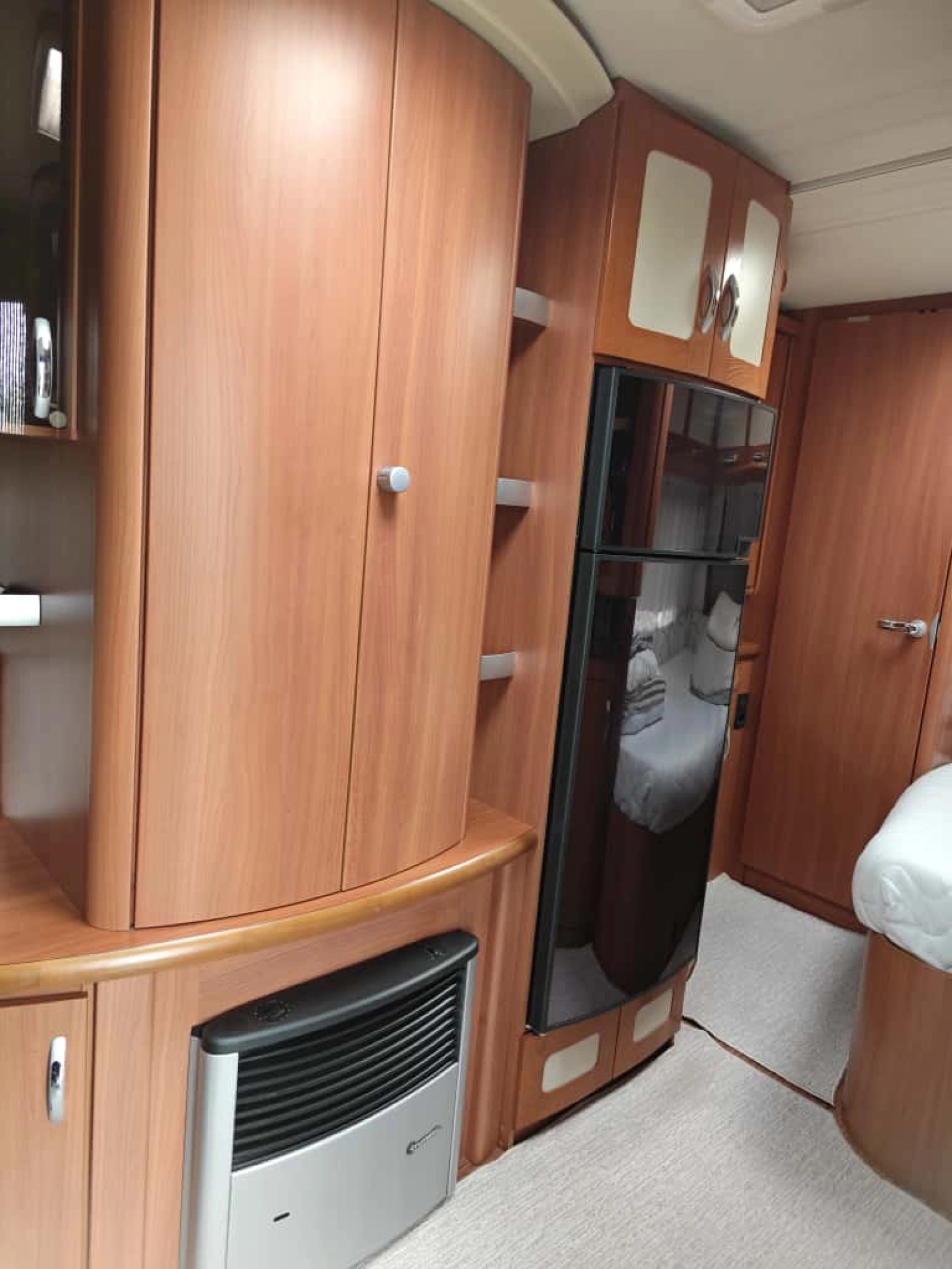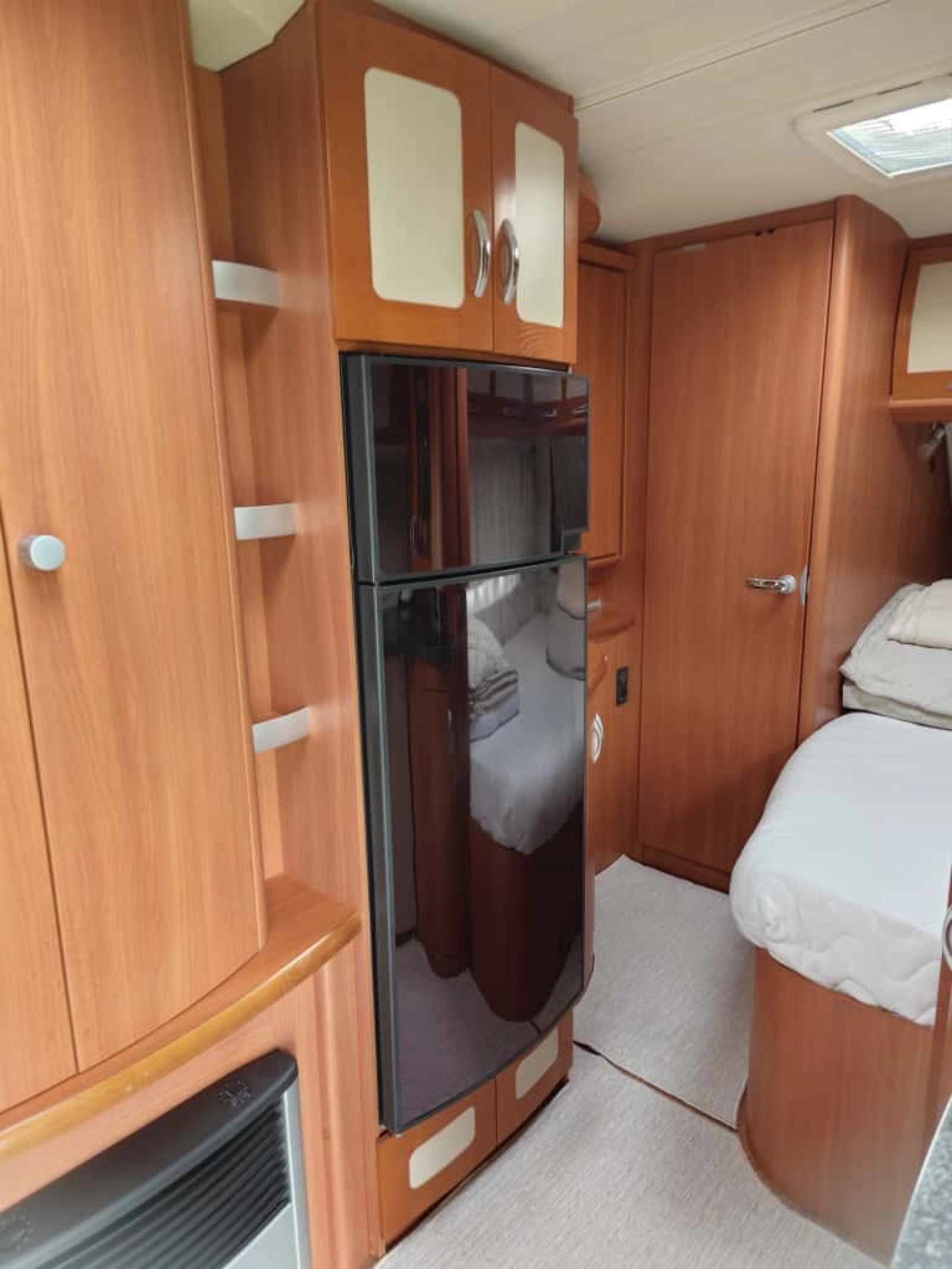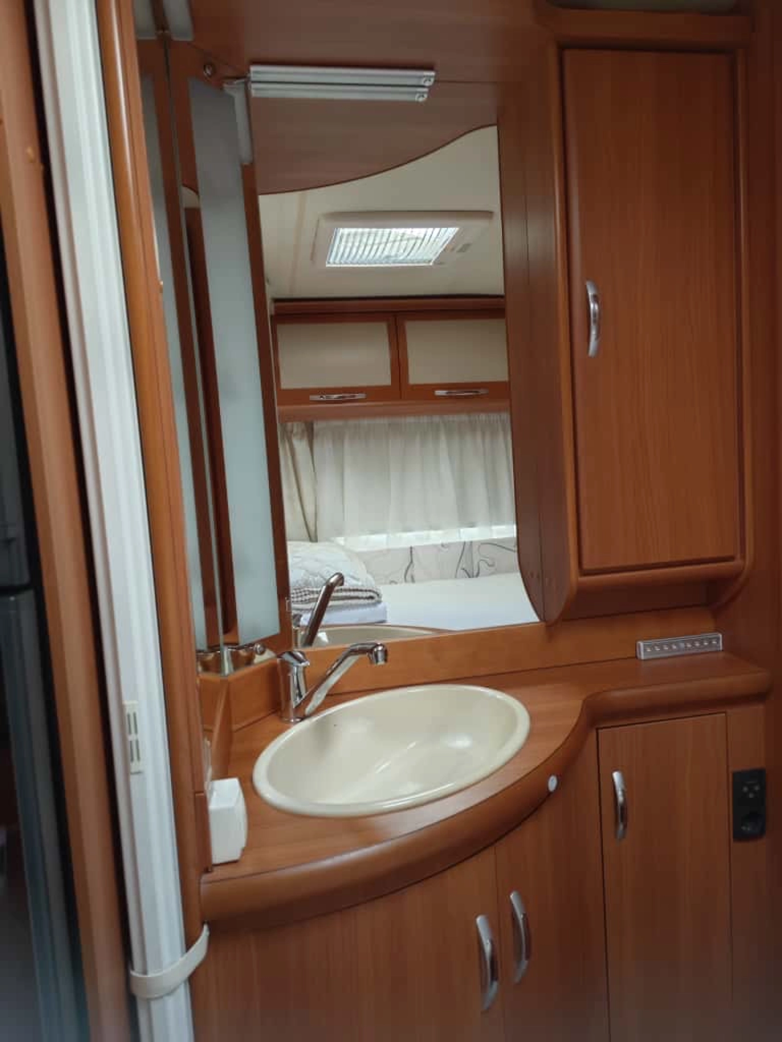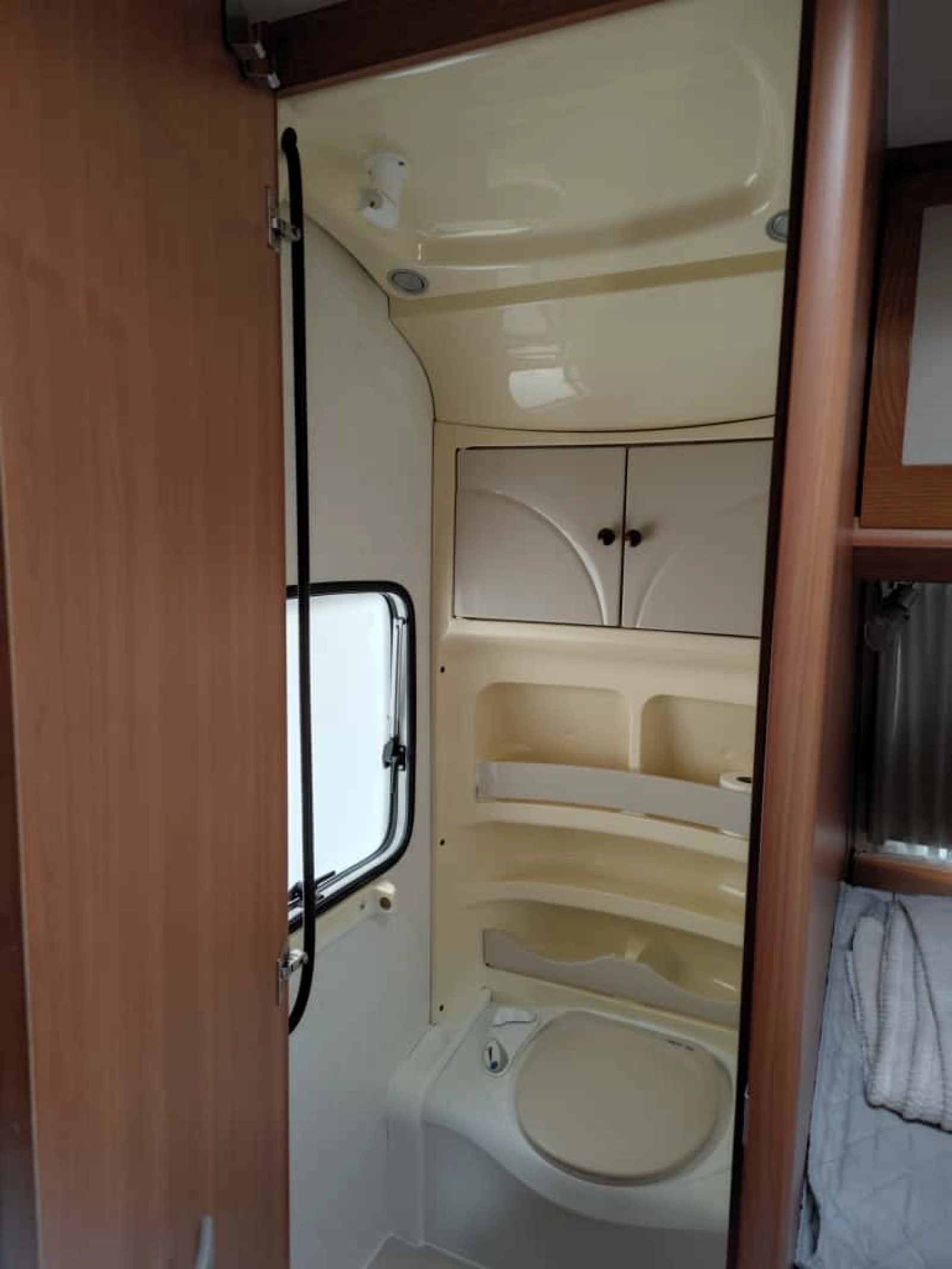 W środku znajduje się przestronna część wypoczynkowa w kształcie podkowy, którą można rozłożyć na dodatkowe spanie, a także osobna sypialnia z wygodnym łóżkiem francuskim. Kuchnia została wyposażona w kuchenkę gazową, duży blat roboczy, lodówkę działającą na 12V/230V/gaz oraz zlewozmywak. Do dyspozycji jest również łazienka z WC kasetowym i prysznicem. Komfort zapewnia ogrzewanie Truma z nadmuchem oraz bojler do ciepłej wody. Całość dopełniają liczne szafki i schowki, rolety i moskitiery w oknach oraz nastrojowe oświetlenie LED.