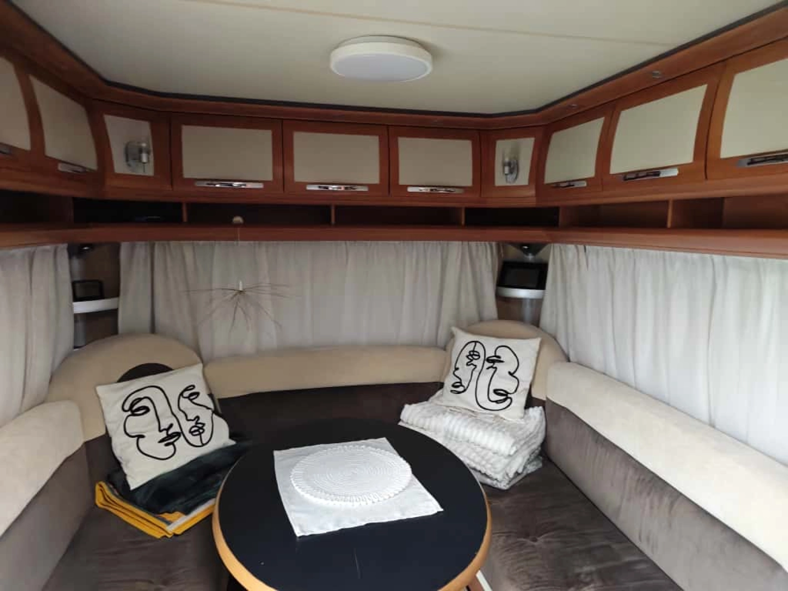 Stan przyczepy oceniam jako bardzo dobry – sucha, szczelna i zadbana. Wnętrze czyste, meble w świetnym stanie.