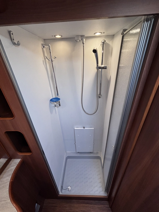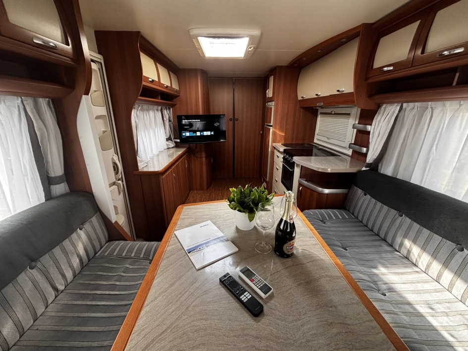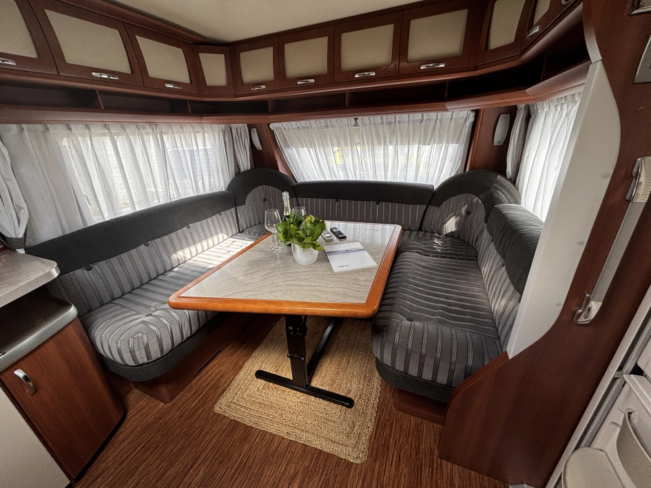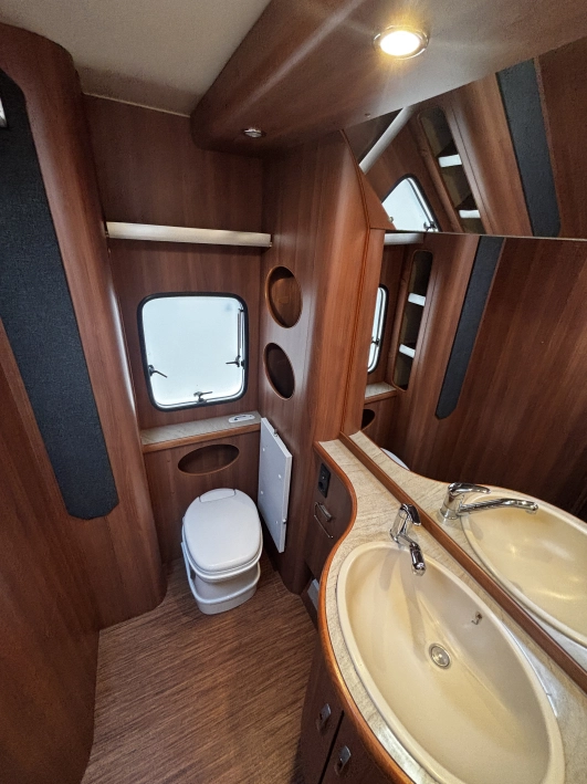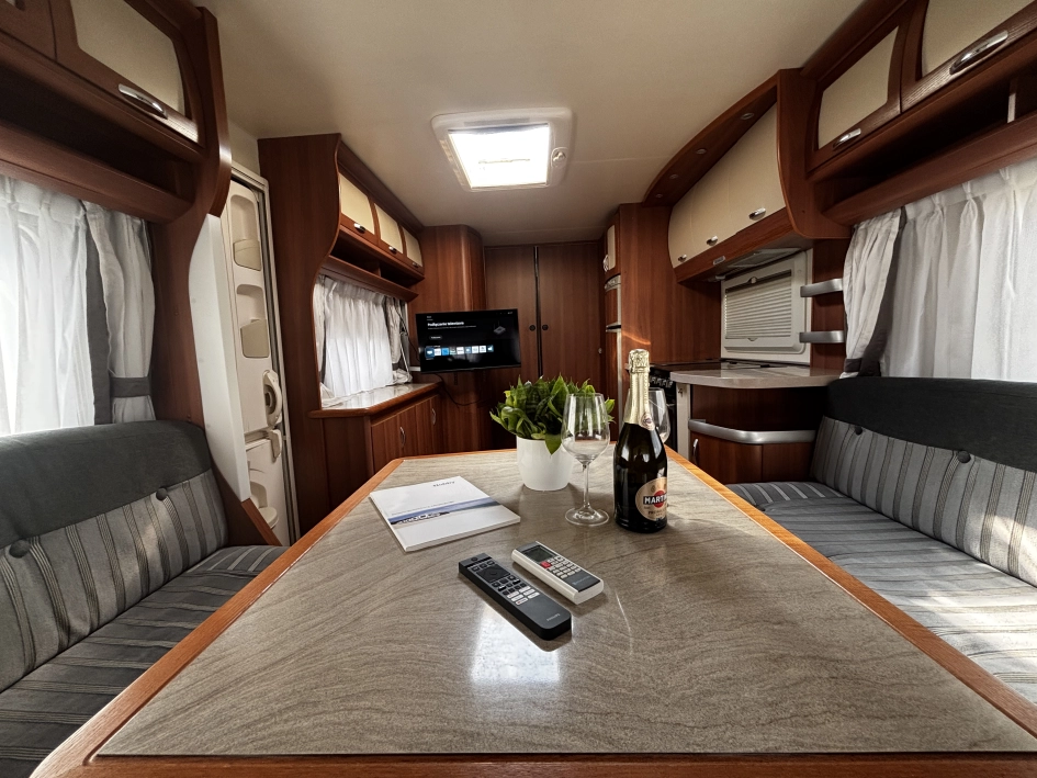 Hobby 780 WLU Prestige Nordic Edition 2011r to luksusowa, dwuosiowa przyczepa zimowa (ok. 2,2 tony, 9m+ długości), zoptymalizowana na rynek skandynawski. Wyposażona w ogrzewanie Alde (wodne + podłogowe), wzmocnioną izolację, przestronną łazienkę na końcu z prysznicem oraz wnętrze Prestige. Idealna do użytku całorocznego dla wymagających użytkowników.