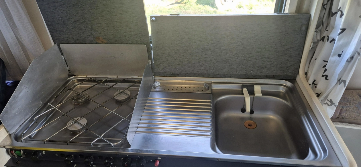 Przyczepa wyposażona jest w ogrzewanie typu Webasto (założona przez poprzedniego właściciela) oraz toaletę turystyczną chowaną w specjalne miejsce pod szafą. Na wyposażeniu również zbiornik na czystą oraz brudną wodę, radio Pioneer z głośnikami i koło zapasowe. Lodówka standardowa 12v/gaz/230v. Dorzucam jeszcze drugi komplet kół na stalowych felgach.