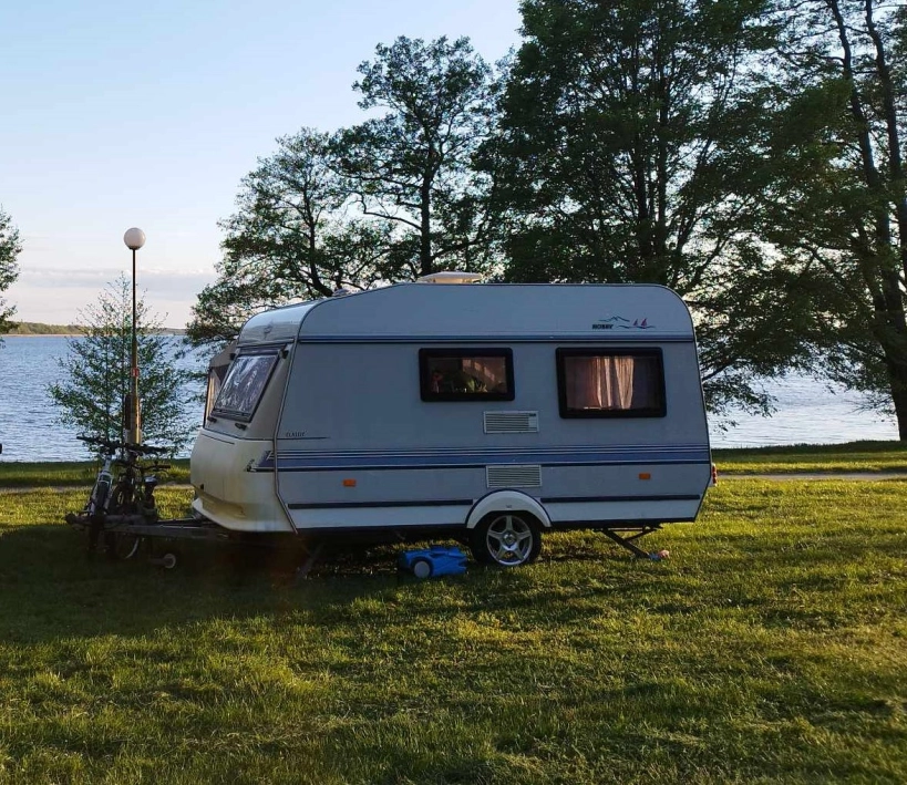 Witam, oferuję na sprzedaż przyczepę Hobby Classic z 1994 roku wraz z podwójnym przedsionkiem marki Dorema (głowny) i Obelink Aurora T4 (jako dostawka) oraz panelami słonecznymi wolnostojącymi. Przyczepa sucha, bez zacieków i brzydkich zapachów. W czerwcu wymieniony został hamulec najazdowy oraz okładziny hamulca bębnowego. W środku układ łóżko malżeńskie oraz kanapy rozkładane wygodnie dla 1 osoby.