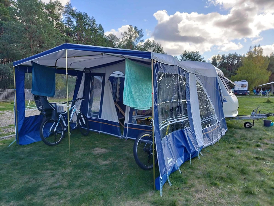 Przyczepę użytkowaliśmy przez dwa sezony. Kupiona została na tzw. próbę czy rodzinie się spodoba. Przyszedł czas by kupić coś większego i na dłużej, gdyż dzieci rosną, a wyjazdy stały się naszym hobby. Z pewnością sprawi jeszcze komuś dużo radości.