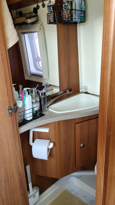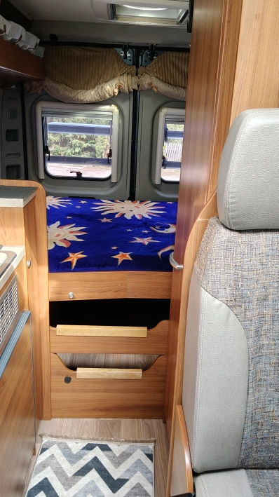 -kuchnia wyposażona w kuchenkę Dometic, lodówkę Thetford 60 l