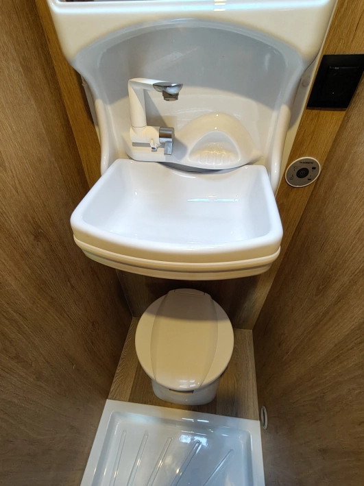 • Elektroblok ze panelem sterującym. Poziom naładowania akumulatora rozruchowego oraz akumulatora dodatkowego. Poziom wody czystej i brudnej.