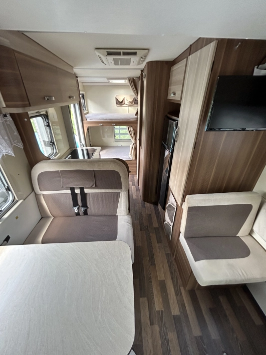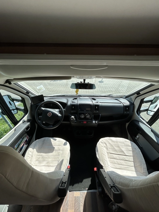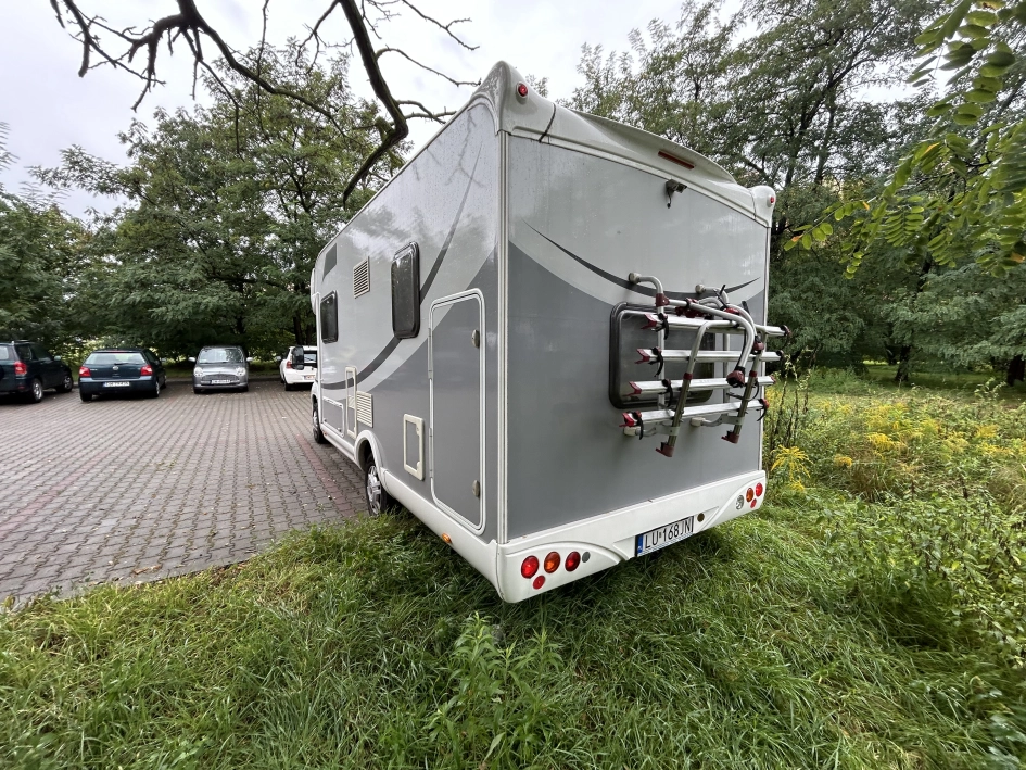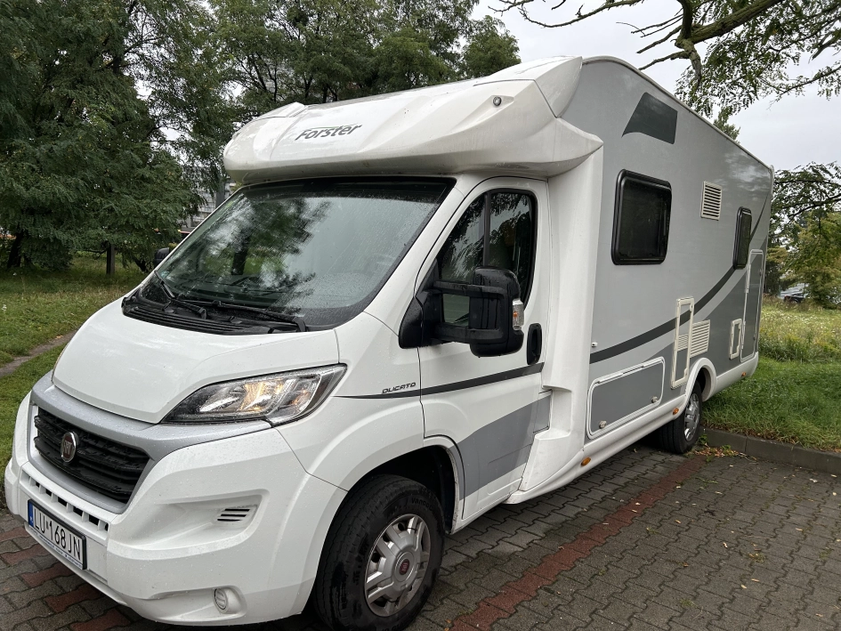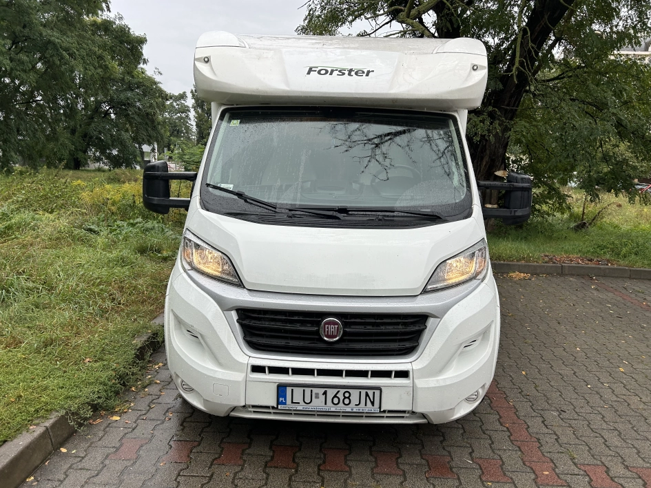 Na sprzedaż kamper Forster T699 – półintegra na bazie Fiat Ducato, z opuszczanym łóżkiem, instalacją solarną i aż 7 miejscami do jazdy i spania.