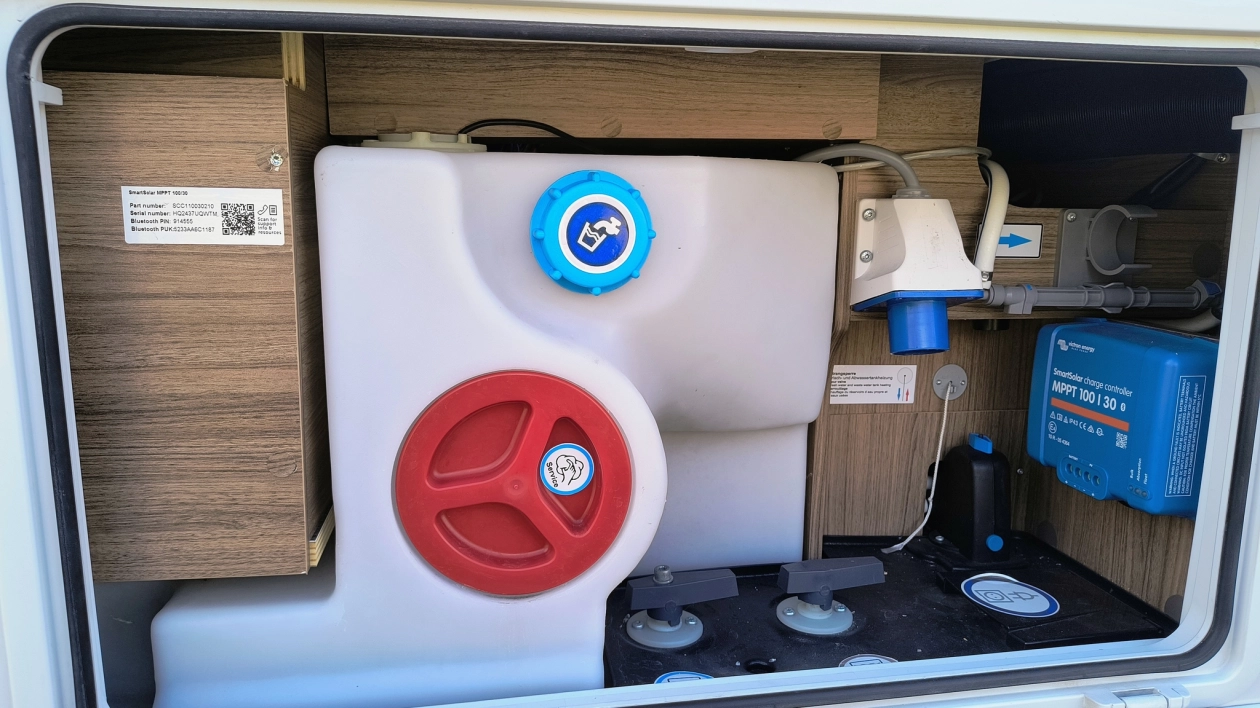 - dwa panele solarne ładujące akumulatory LifePO4 (2x100Ah)