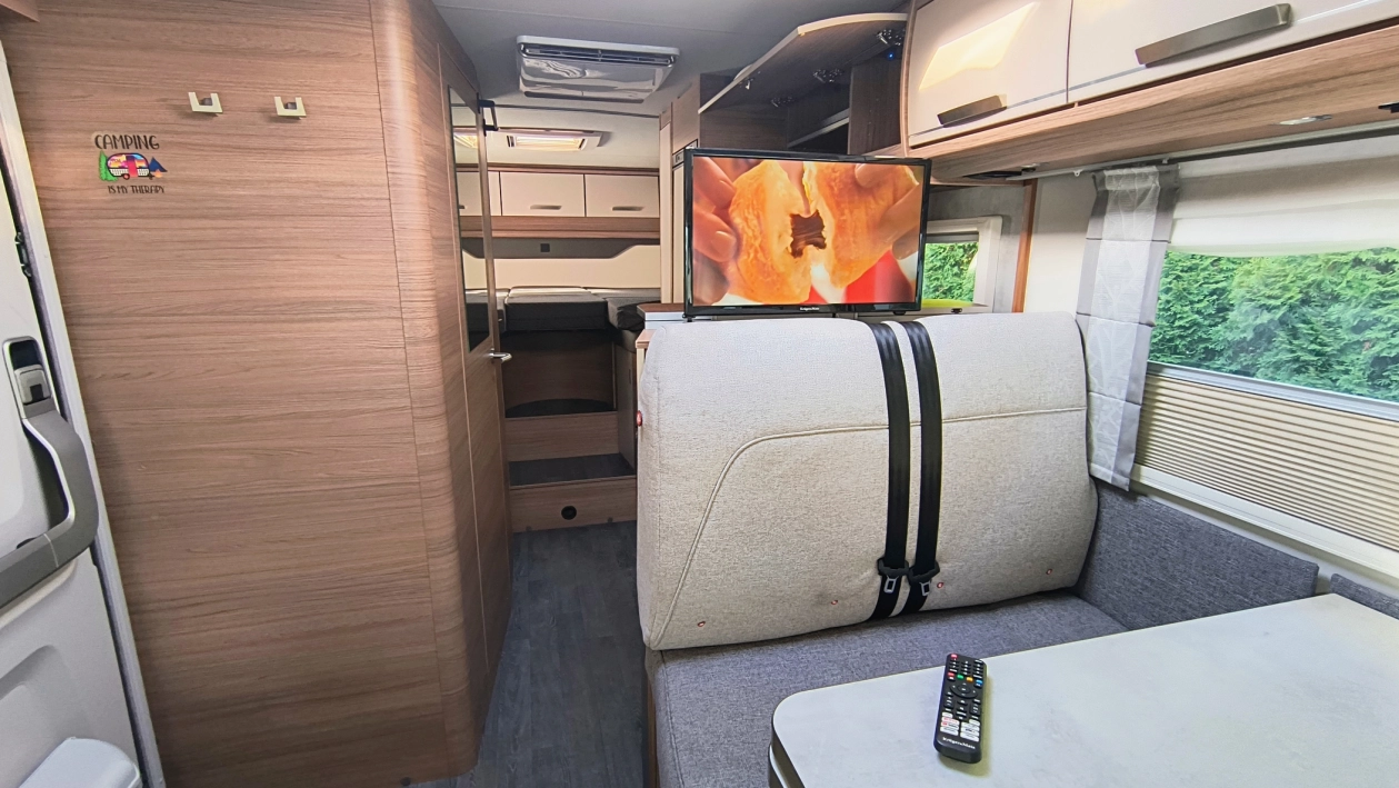 - dwa telewizory LCD (sypialnia + salon) - ten w salonie automatycznie wysuwany z zabudowy oparcia wyposażony w funkcje android smart.