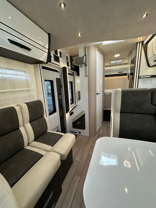 Bardzo przestronny model z łóżkiem poprzecznym i drugim opuszczanym elektrycznie.