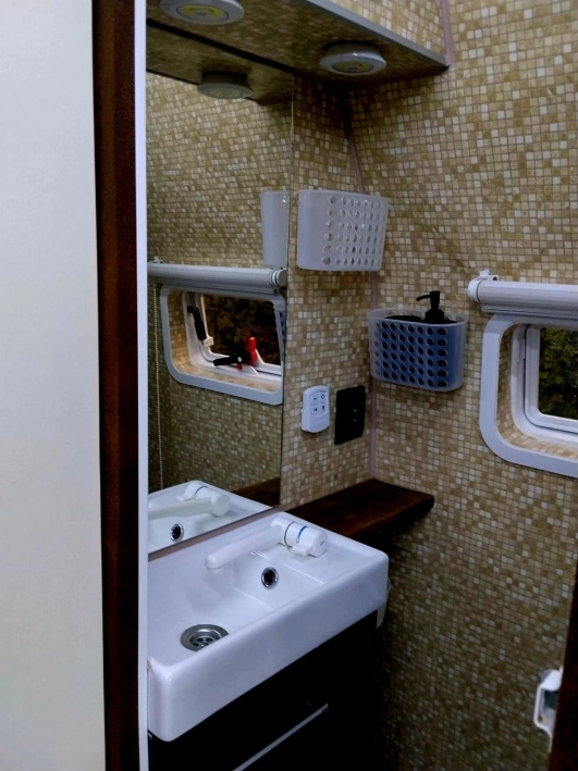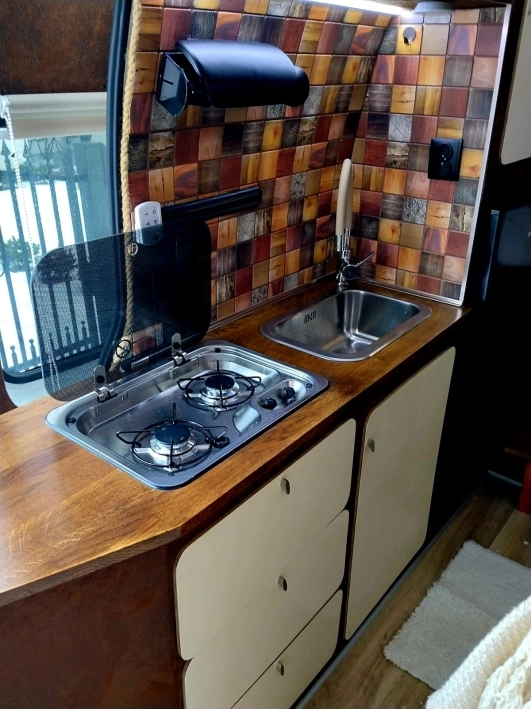 - zmywarka turystyczna podłączona do zbiornika na szarą wodę