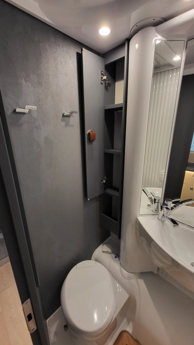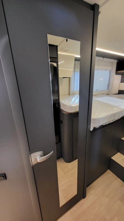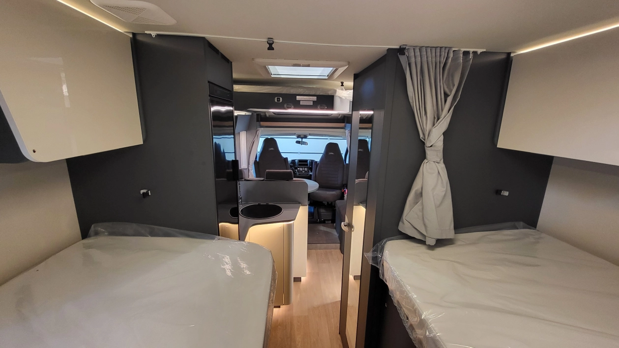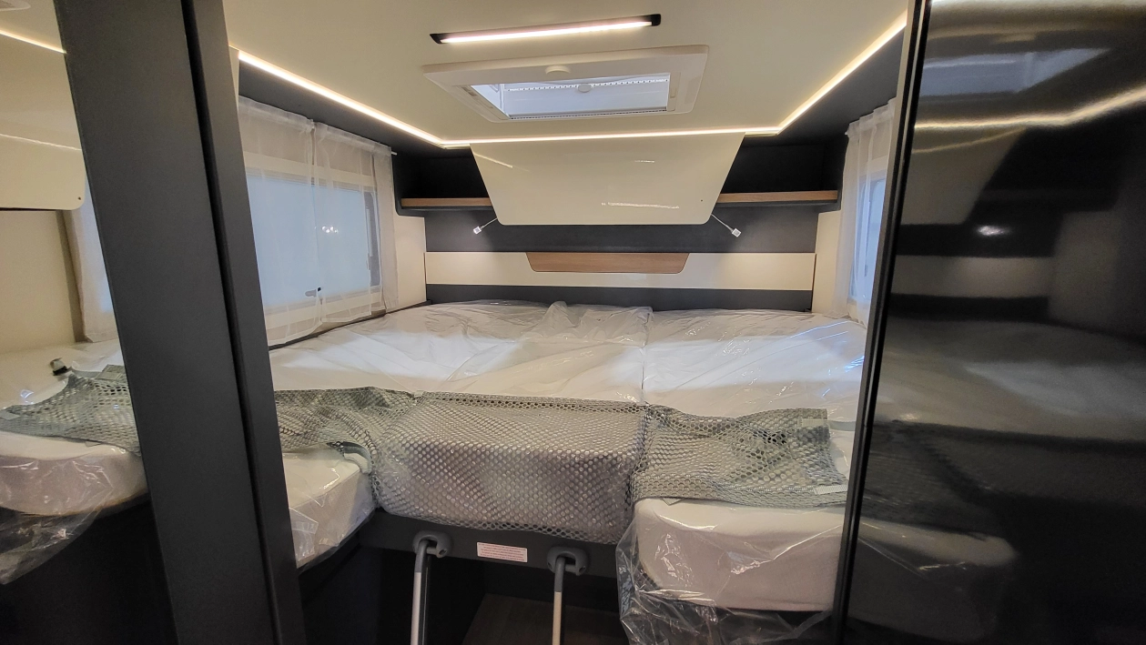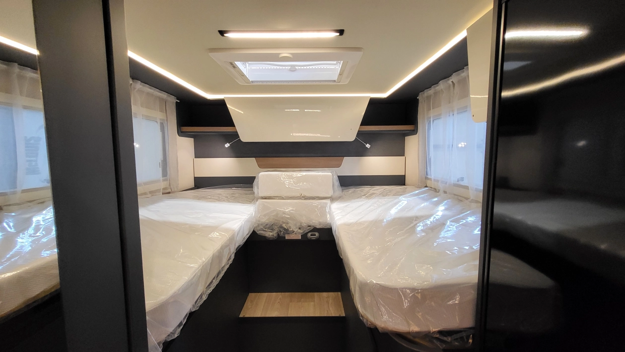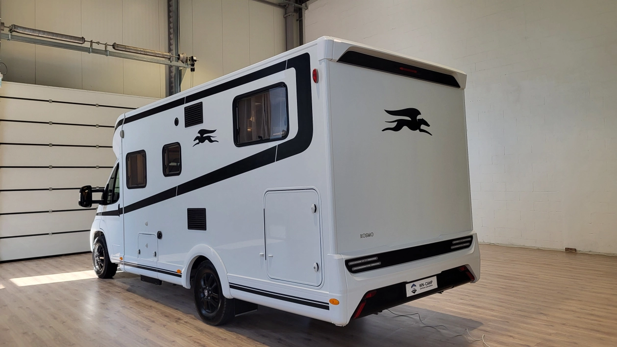 Laika Kosmo L 319 to wyjątkowa włoska półintegra stworzona z najwyższą dbałością o szczegóły i detale wewnątrz jak i zewnątrz kampera. Jeden z najbardziej dopracowanych modeli włoskiej marki Laika, cenionej za wysoką jakość wykonania, elegancki design oraz solidną zabudowę. To idealny pojazd dla osób, które szukają kampera poniżej 7 metrów długości – jest on mniejszym bratem układu Kosmo L 409 i jednocześnie oczekują komfortu podróżowania porównywalnego z apartamentem na kołach. W tym układzie znajdziemy przestronny salon w układzie litery L i okrągłym stołem. W tym pojeździe łazienka jest w jednym pomieszczeniu na systemie Vario, gdzie ściana prysznica jest obrotowa i jednym ruchem zamieniamy ją w pomieszczenie do kąpieli lub do skorzystania z umywalki i ubikacji. W tylnej części kampera znajdują się dwa łóżka wzdłużne. Ten układ wyróżnia także bardzo duży garaż.