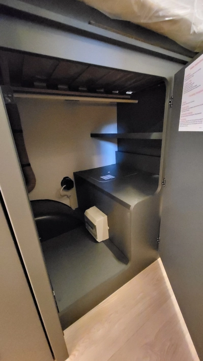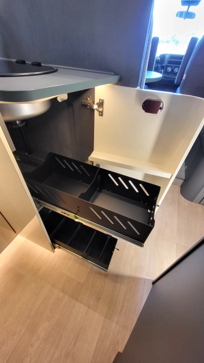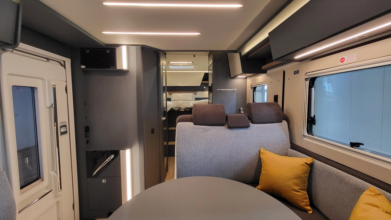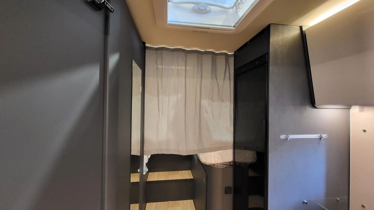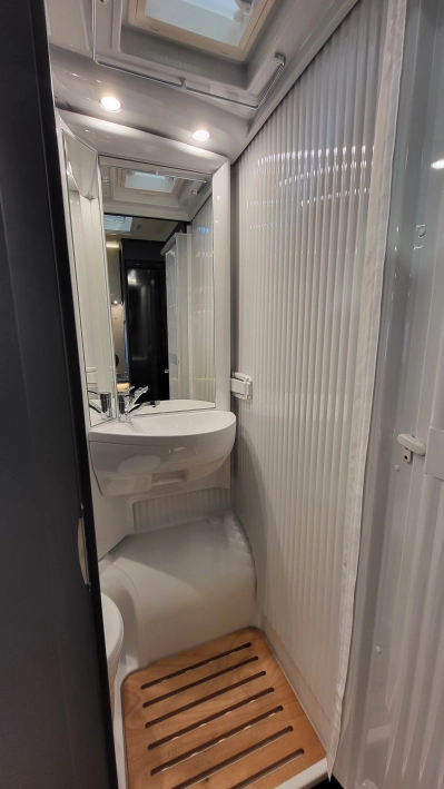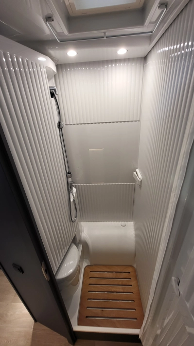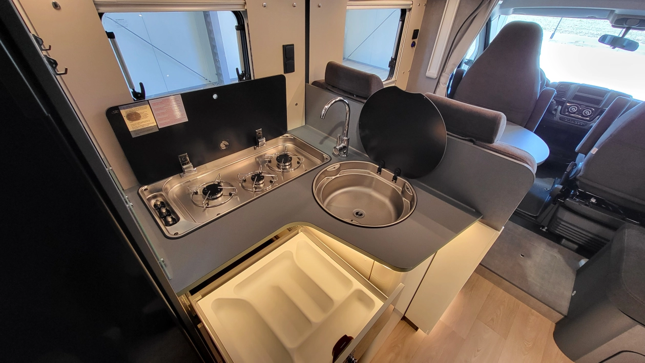 Laika Kosmo L 319 to wyjątkowa włoska półintegra stworzona z najwyższą dbałością o szczegóły i detale wewnątrz jak i zewnątrz kampera. Jeden z najbardziej dopracowanych modeli włoskiej marki Laika, cenionej za wysoką jakość wykonania, elegancki design oraz solidną zabudowę. To idealny pojazd dla osób, które szukają kampera poniżej 7 metrów długości – jest on mniejszym bratem układu Kosmo L 409 i jednocześnie oczekują komfortu podróżowania porównywalnego z apartamentem na kołach. W tym układzie znajdziemy przestronny salon w układzie litery L i okrągłym stołem. W tym pojeździe łazienka jest w jednym pomieszczeniu na systemie Vario, gdzie ściana prysznica jest obrotowa i jednym ruchem zamieniamy ją w pomieszczenie do kąpieli lub do skorzystania z umywalki i ubikacji. W tylnej części kampera znajdują się dwa łóżka wzdłużne. Ten układ wyróżnia także bardzo duży garaż.